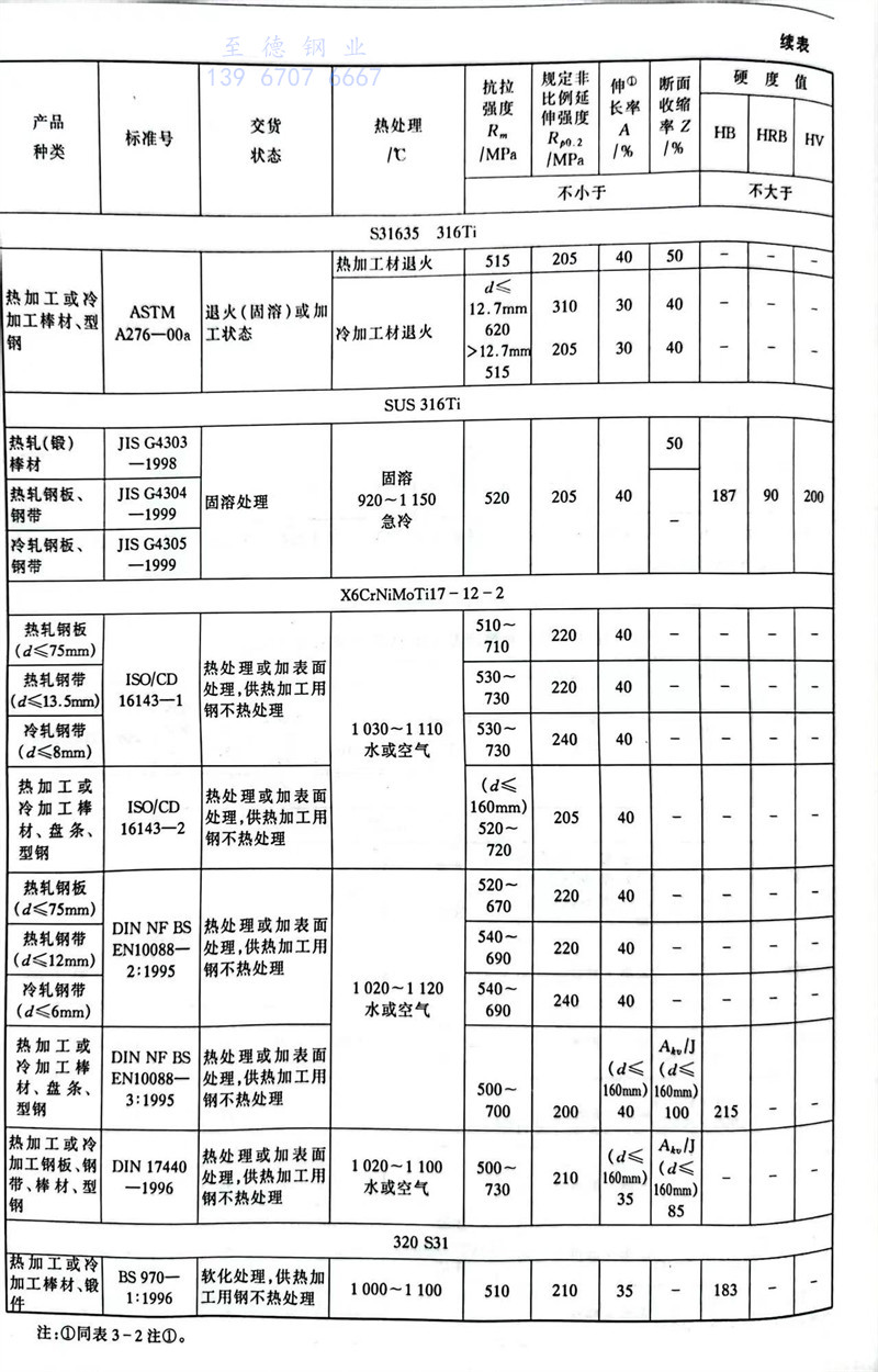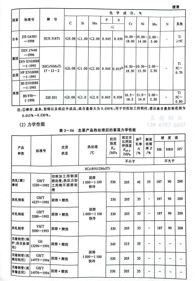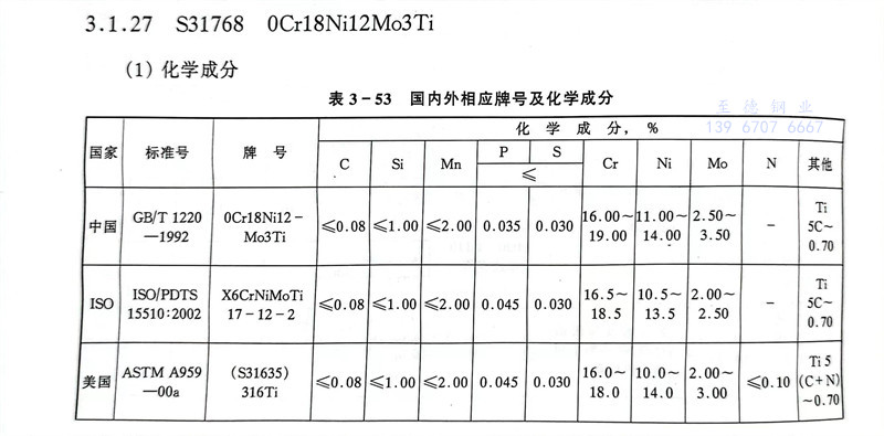 S31768 0Cr18Ni12Mo3Ti 不(bu)銹鋼主要特性(xing)和(he)用途(tu)
