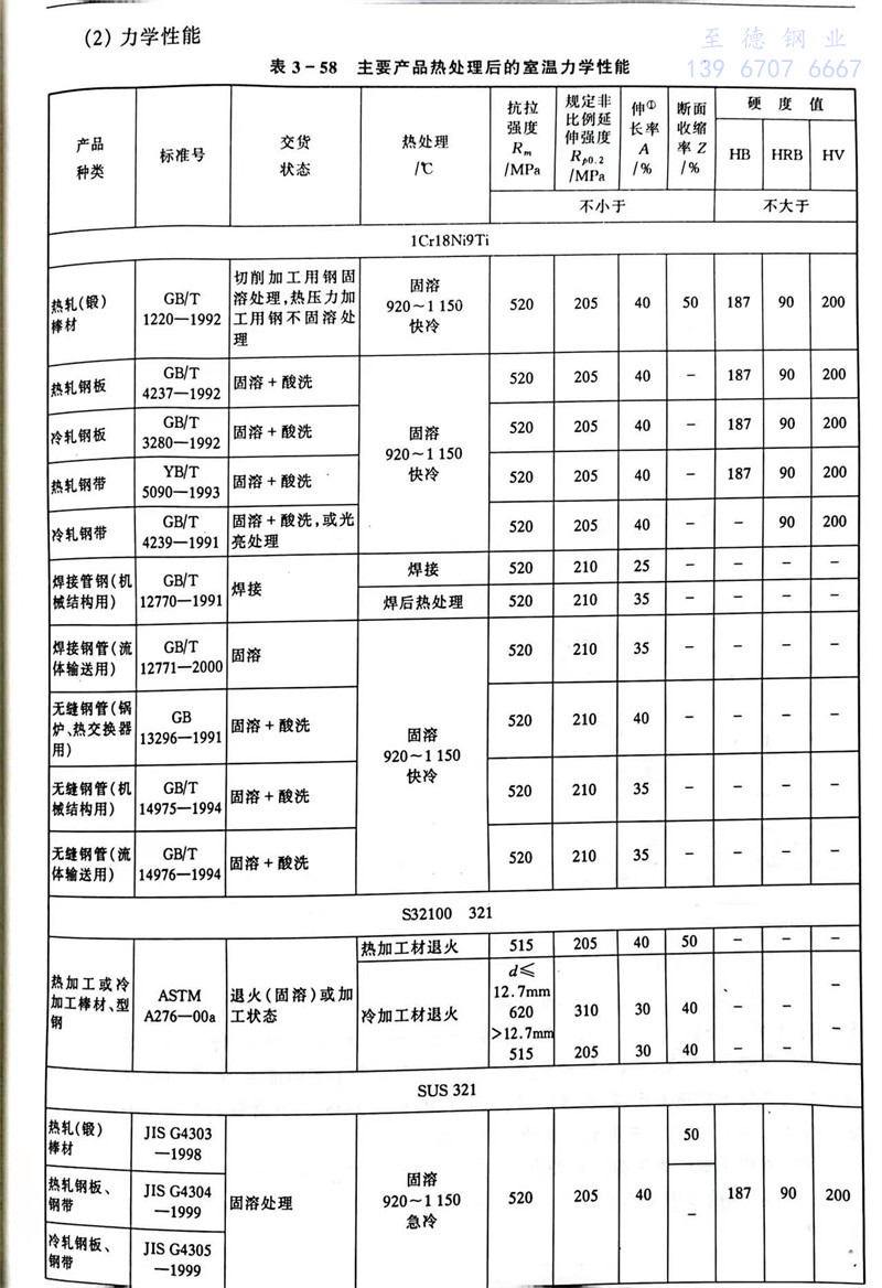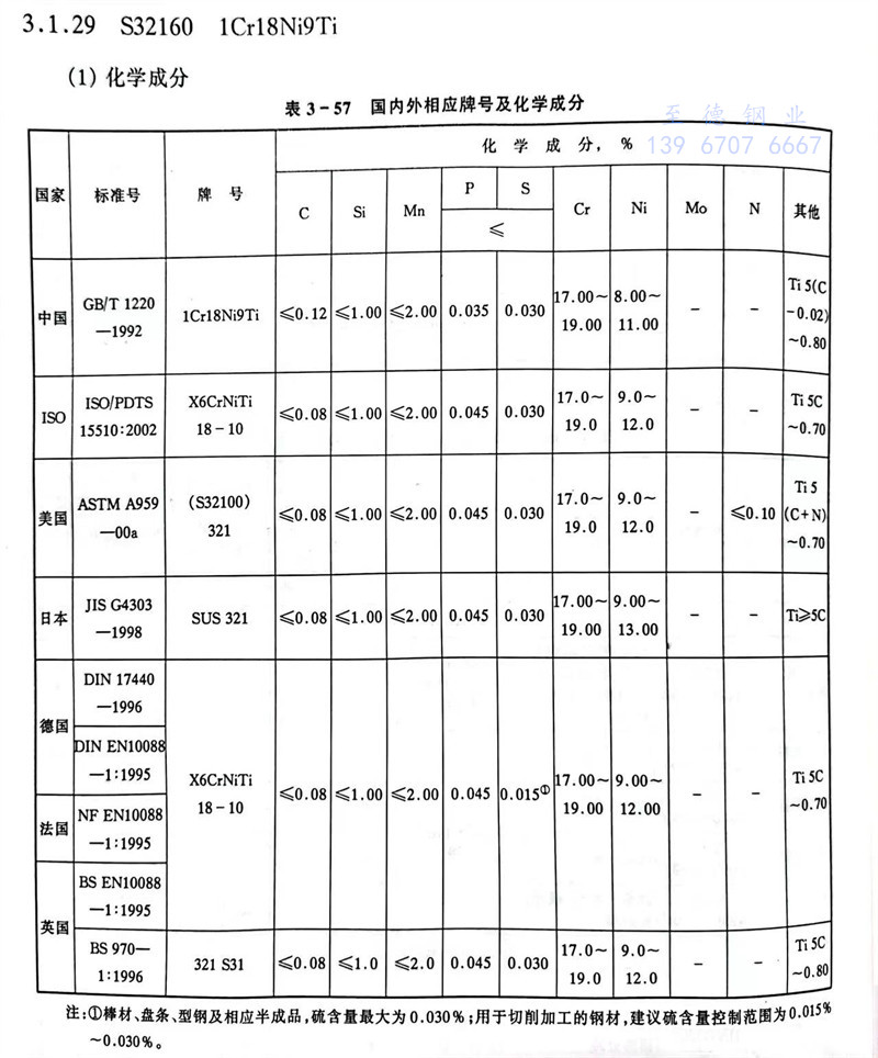 S32160 1Cr18Ni9Ti 不銹鋼主要特性和用途