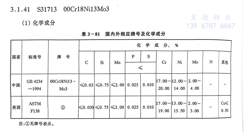 S31713 00Cr18Ni13Mo3 不銹(xiu)鋼主要特性(xing)和(he)用(yong)途