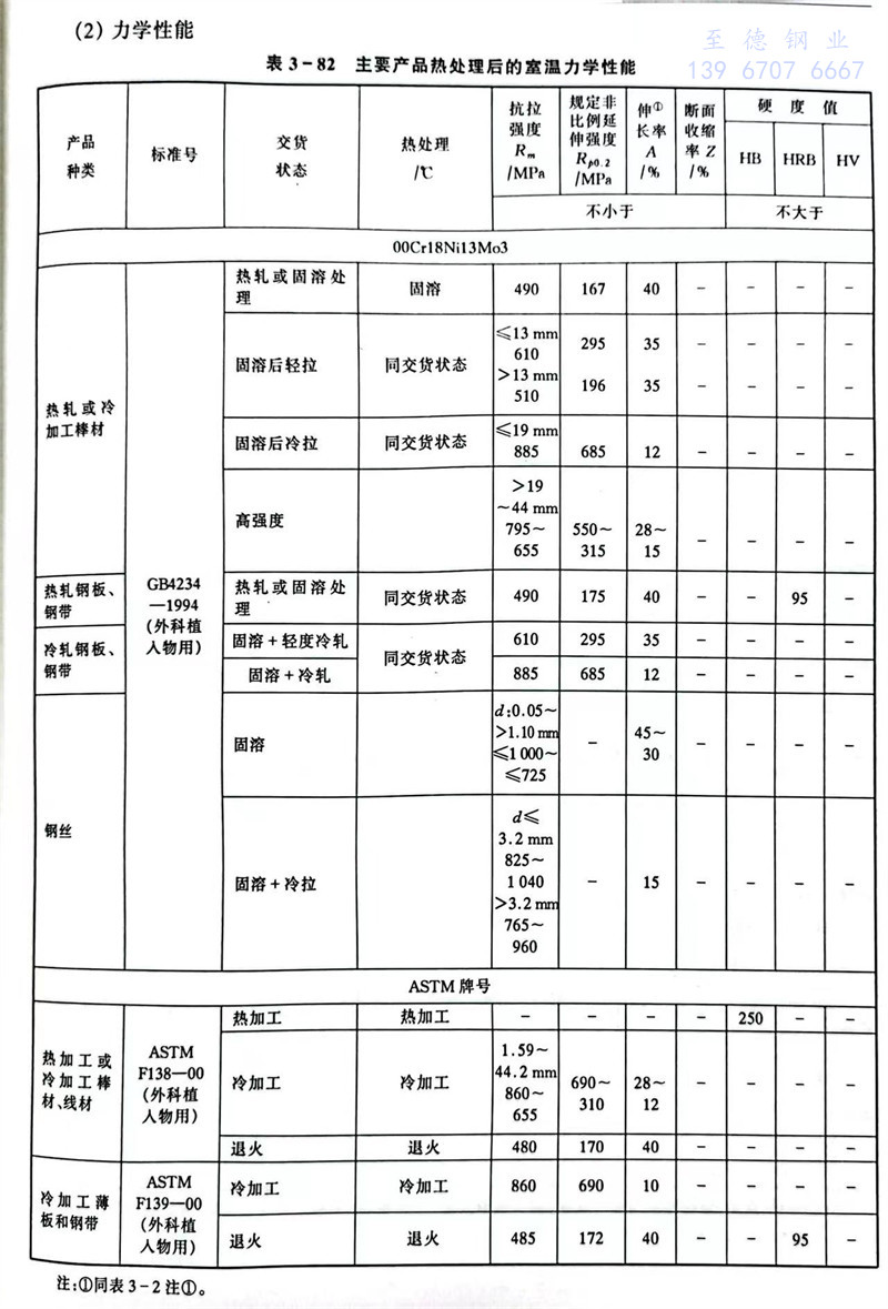 此鋼(gang)耐晶間腐蝕等性能比0Cr18Ni13Mo3 不銹鋼(gang)好(hao),可用(yong)于(yu)0Cr18Ni13Mo3的使用(yong)條件下,制造有嚴格耐晶間腐蝕要求的設備(bei)。還(huan)常用(yong)于(yu)制造外(wai)科植入物。