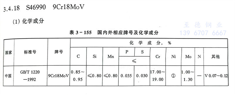 S46990 9Cr18MoV 不銹鋼主(zhu)要特(te)性和(he)用途