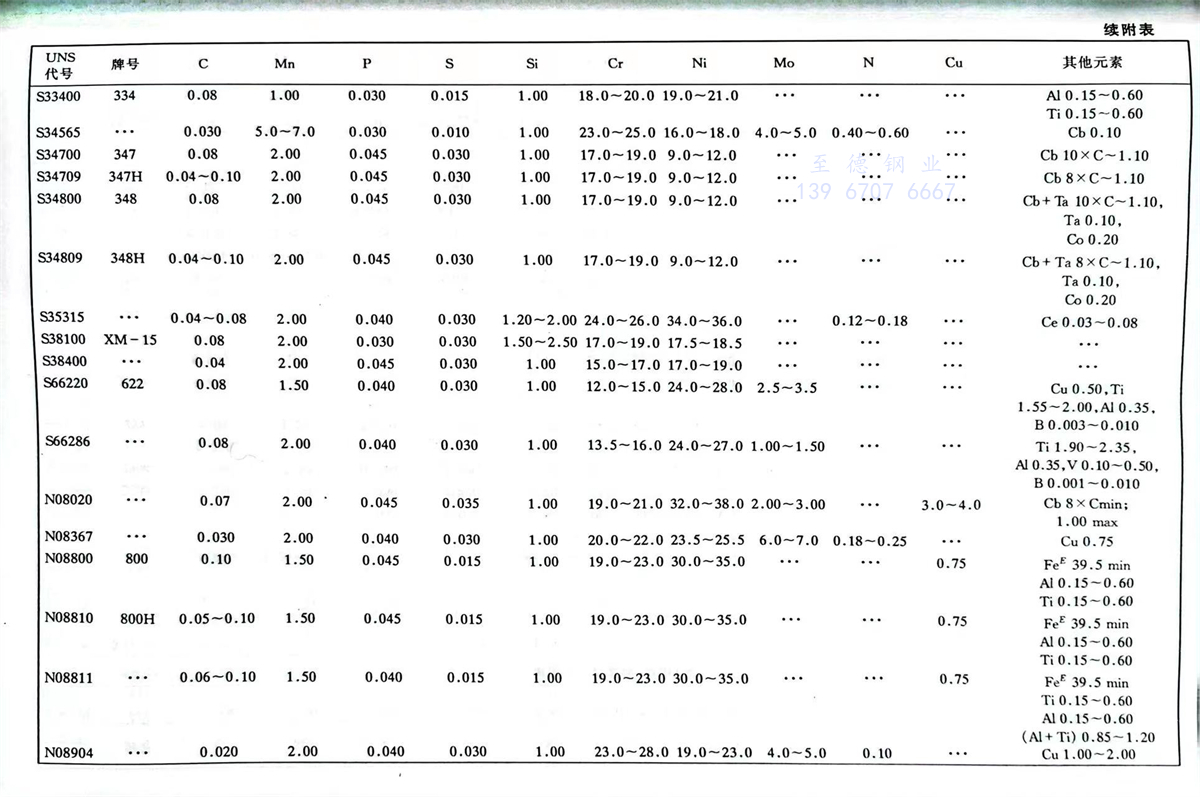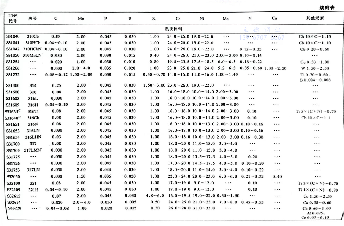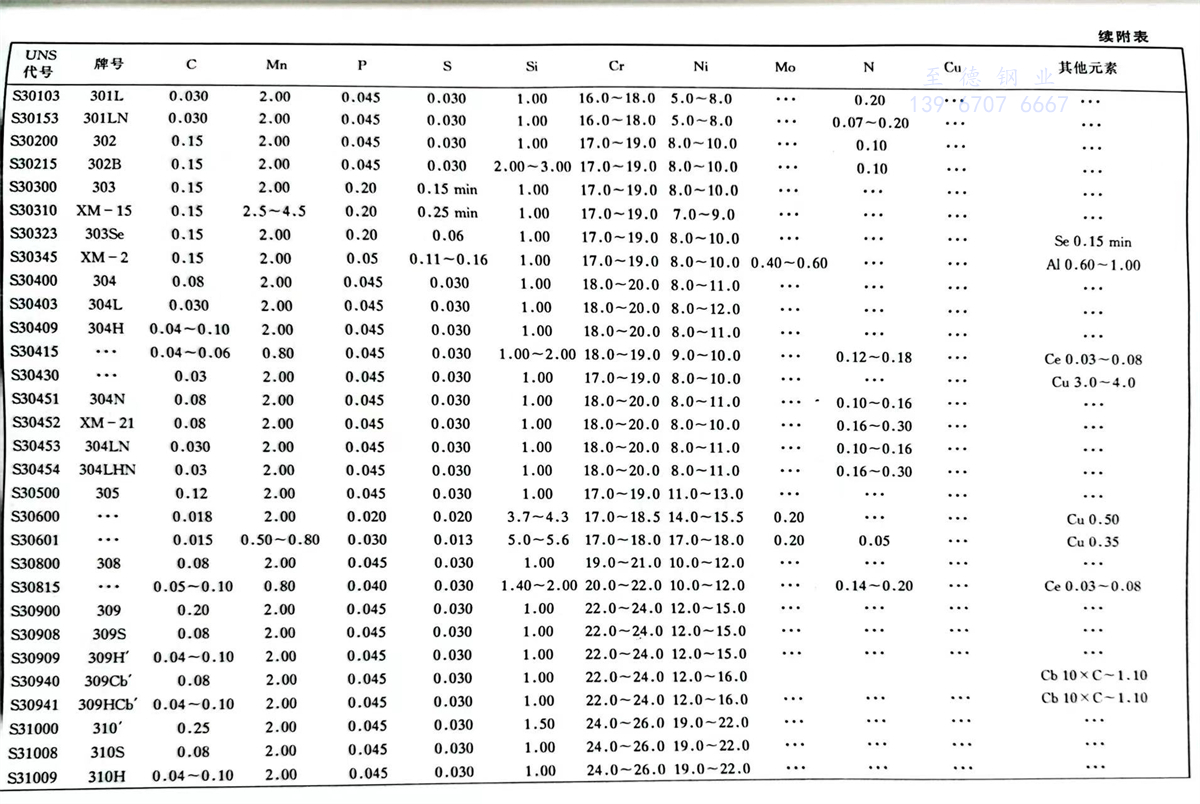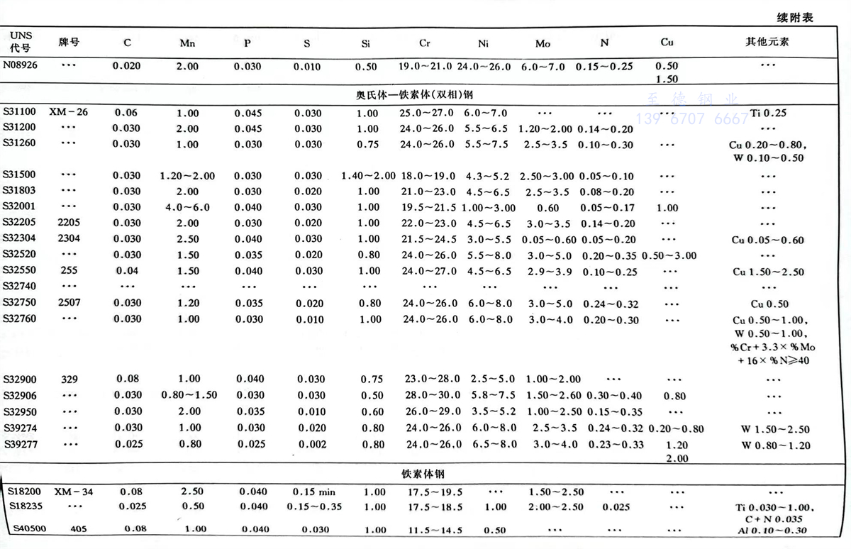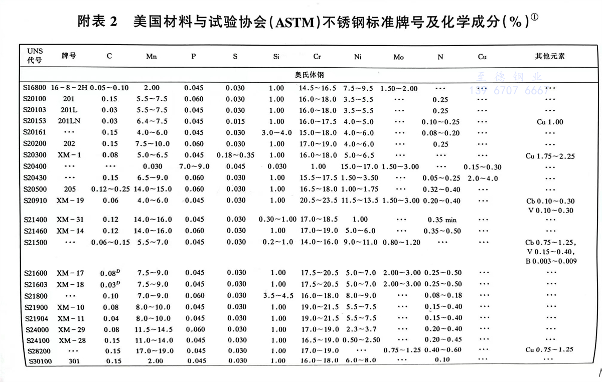 美國材料與試驗協會(ASTM)不銹鋼(gang)標準牌號及化學成分(fen)(%)