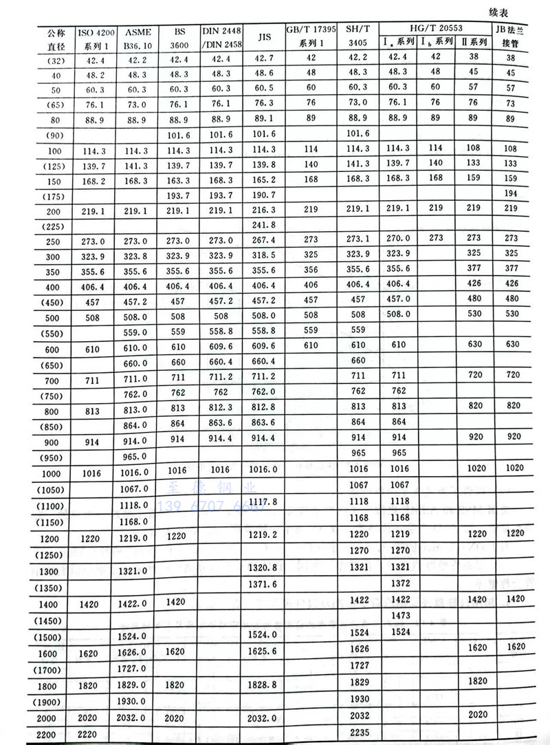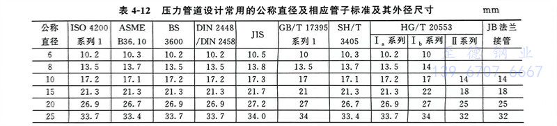 公稱直徑及相應管子標準及其外徑尺寸規格對照表