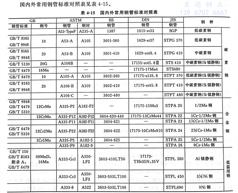 國內(nei)外常用鋼管標(biao)準對照(zhao)表(biao)見表(biao)4-15。
