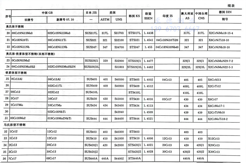 由于GB/T 20878-2007《不銹鋼和耐熱鋼 牌號及化學成分》修改了不銹鋼和耐熱(re)鋼的牌號,有一些國內標準規范更新了,有的仍在沿用以前的牌號,因此本書列出了不銹鋼新舊牌號與其他種類牌號的對比,見表4-16。
