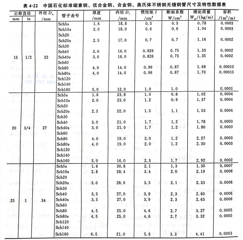 中國石化標準碳素鋼、低合金鋼、合金鋼、奧氏體不銹鋼無縫鋼管尺寸及特性數據表