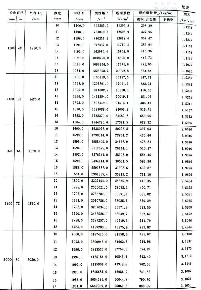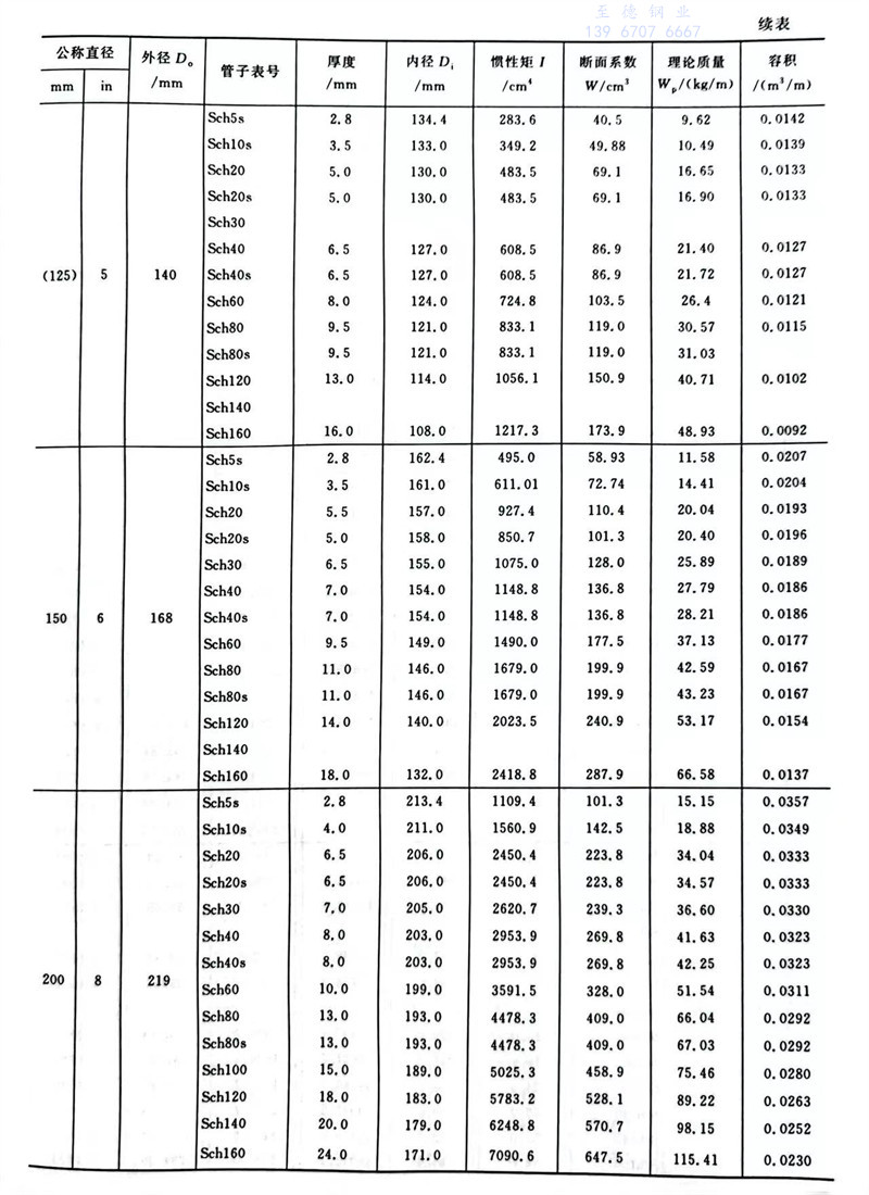 中國石化標準焊接鋼管尺寸及特性數據表