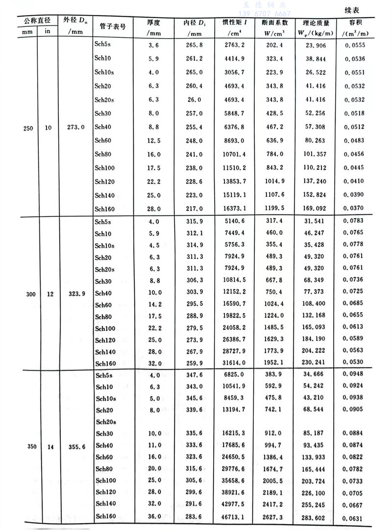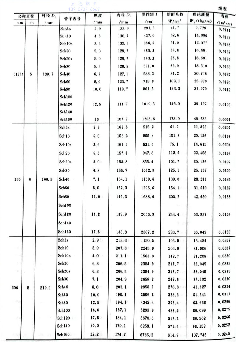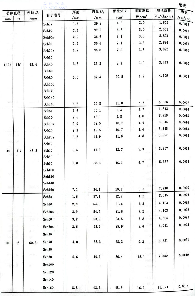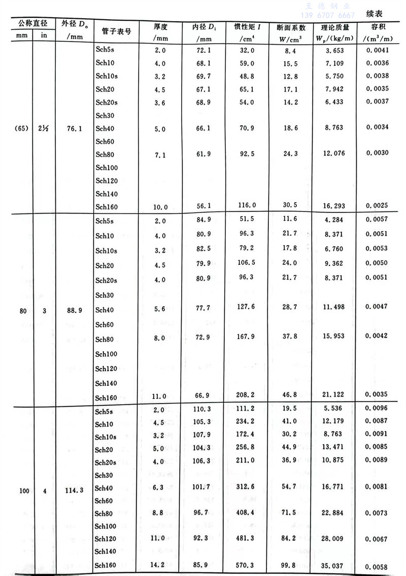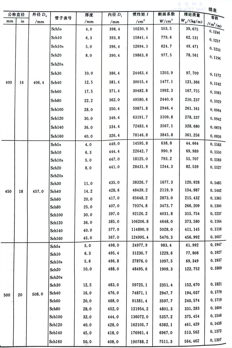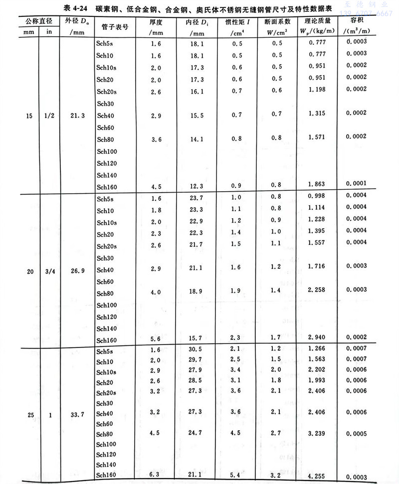 碳素鋼、低合金鋼、合金鋼、奧氏體不銹鋼無縫鋼管尺寸及特性數據表