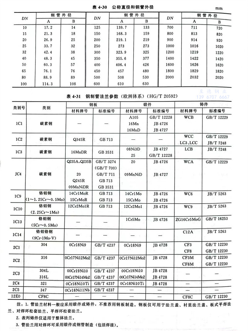 注:1.管法(fa)(fa)(fa)蘭(lan)(lan)材料一般應采用(yong)鍛(duan)件(jian)或鑄(zhu)件(jian),不推薦用(yong)鋼板(ban)(ban)制造。鋼板(ban)(ban)僅可用(yong)于法(fa)(fa)(fa)蘭(lan)(lan)蓋(gai)、襯里法(fa)(fa)(fa)蘭(lan)(lan)蓋(gai)、板(ban)(ban)式平(ping)焊法(fa)(fa)(fa)蘭(lan)(lan)、對焊環松套法(fa)(fa)(fa)蘭(lan)(lan)、平(ping)焊環松套法(fa)(fa)(fa)蘭(lan)(lan)。