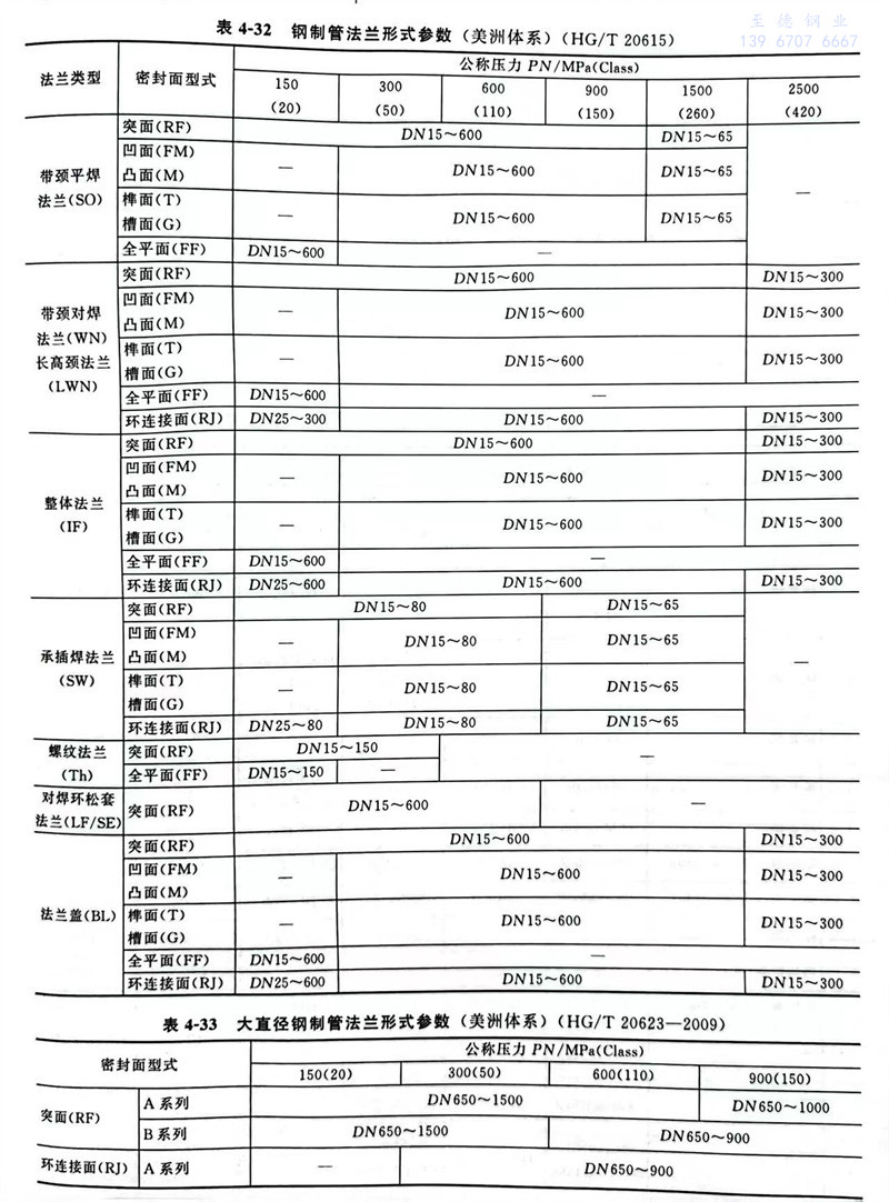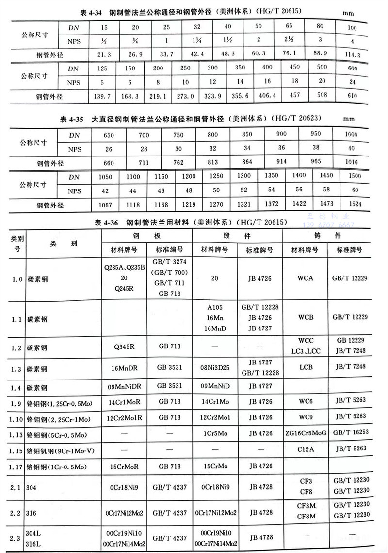 大口徑鋼制管法蘭用材料按HG/T 20615表4.0.1的規定,其化學成分、力學性能以及其他技術要求應符合表4-35中所列有關標準的規定。