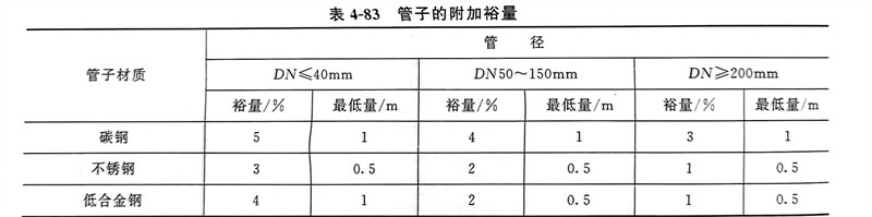 a. 管(guan)子的附加裕量(liang)(表4-83)