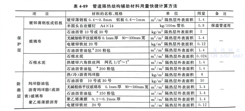 管道(dao)隔熱(re)結構輔助材料用量快捷計算方法見表4-89。