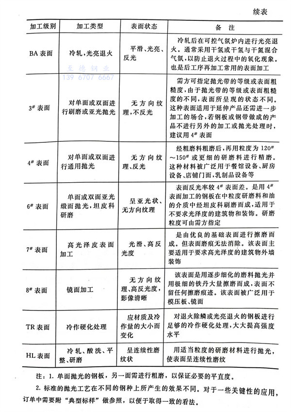 和帶(dai)鋼表(biao)面加工級別,見(jian)表(biao)1-7。