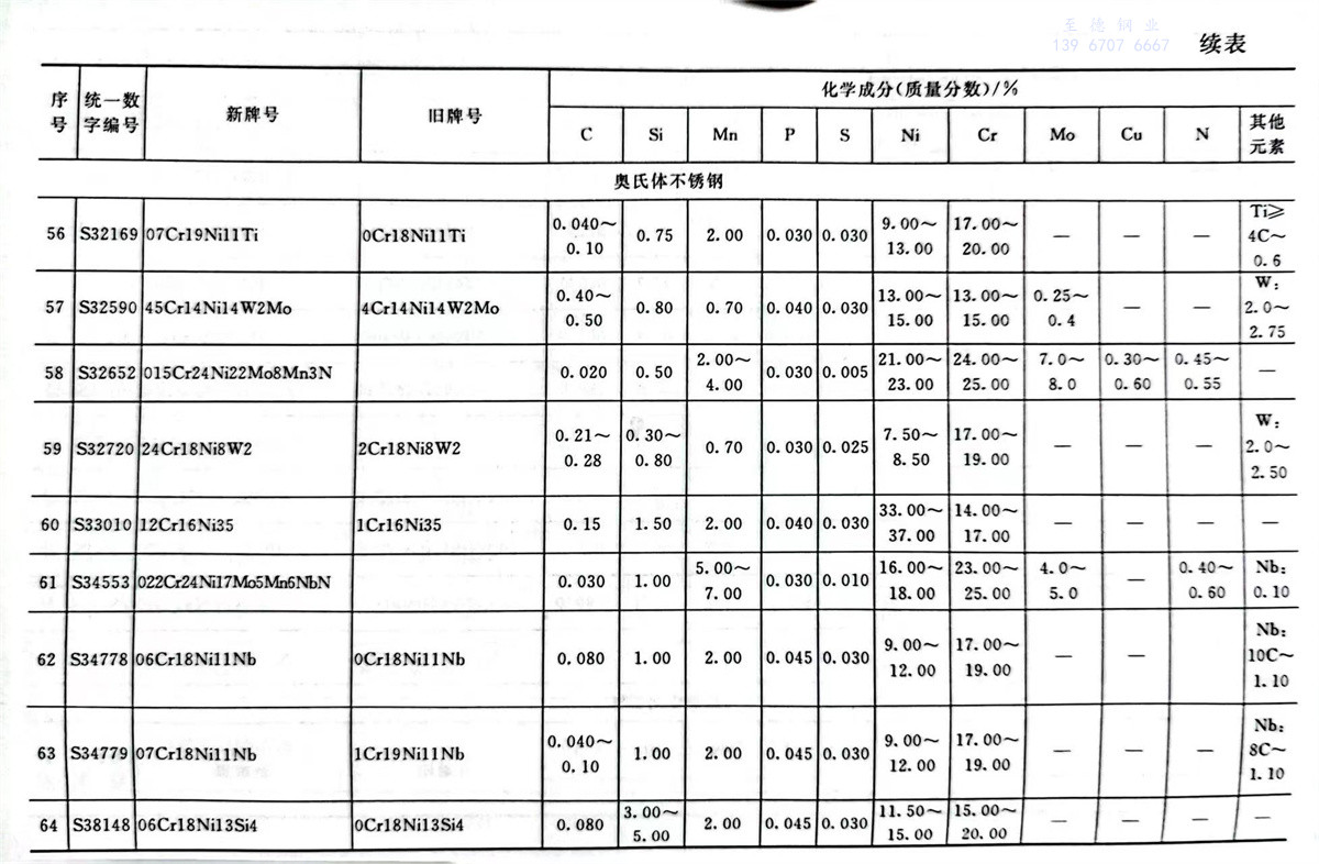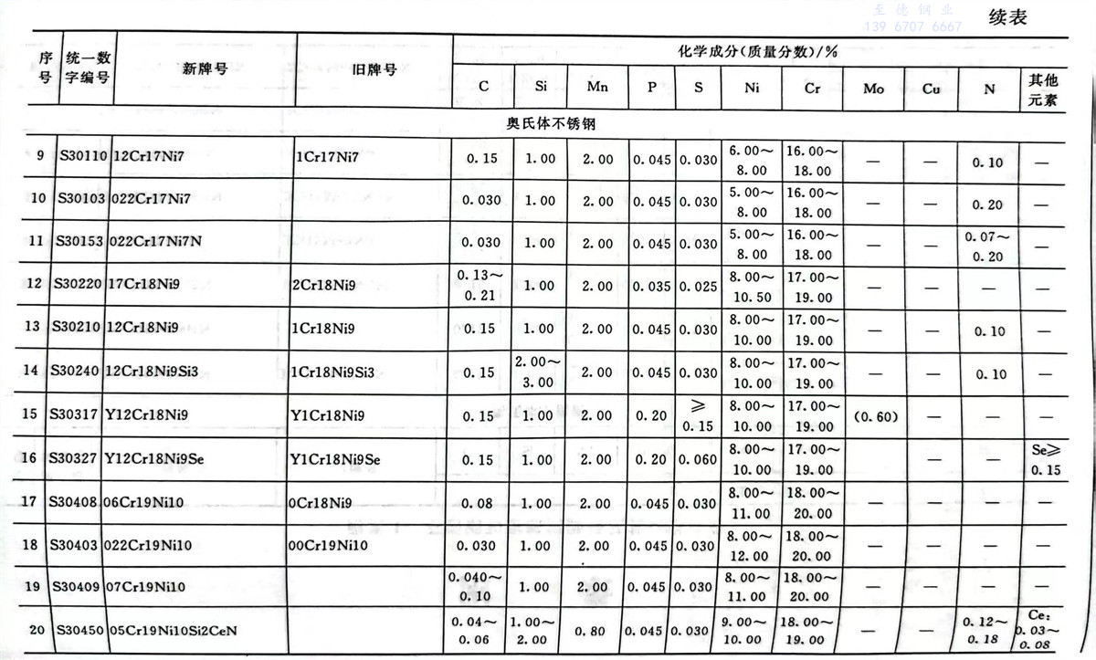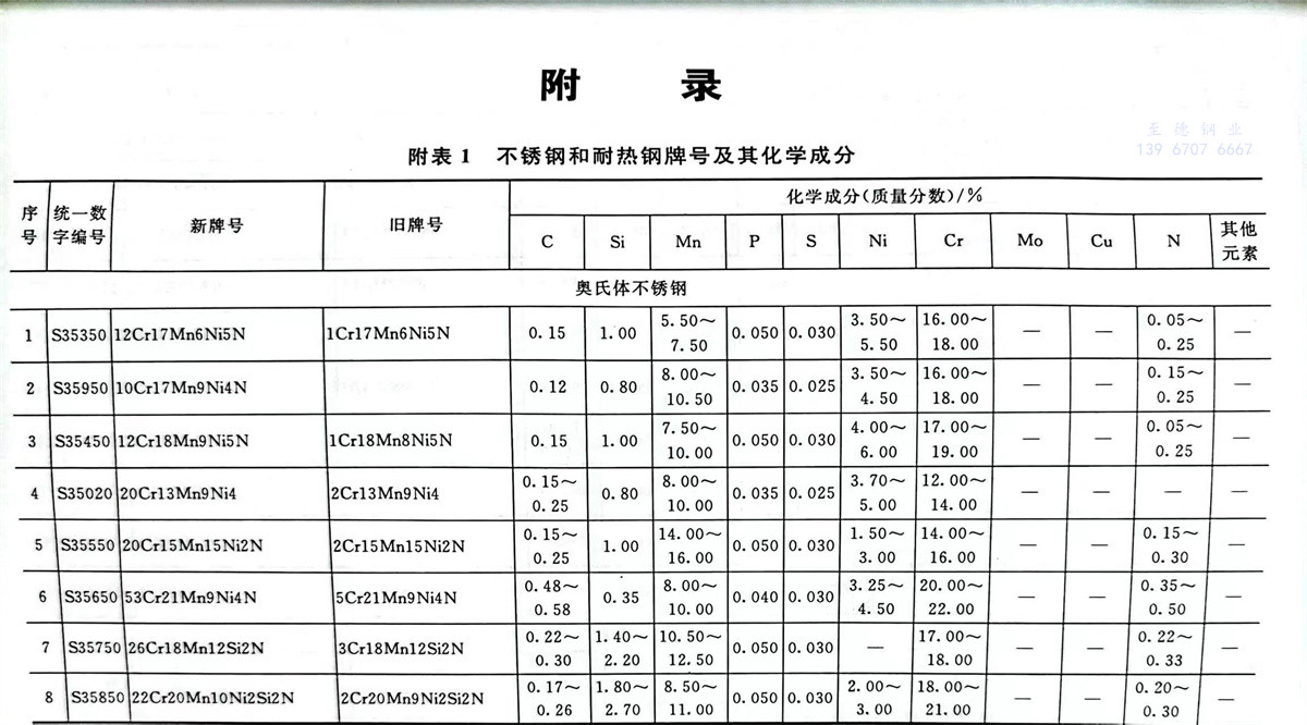 不銹鋼和耐熱鋼牌號及其化學成分表