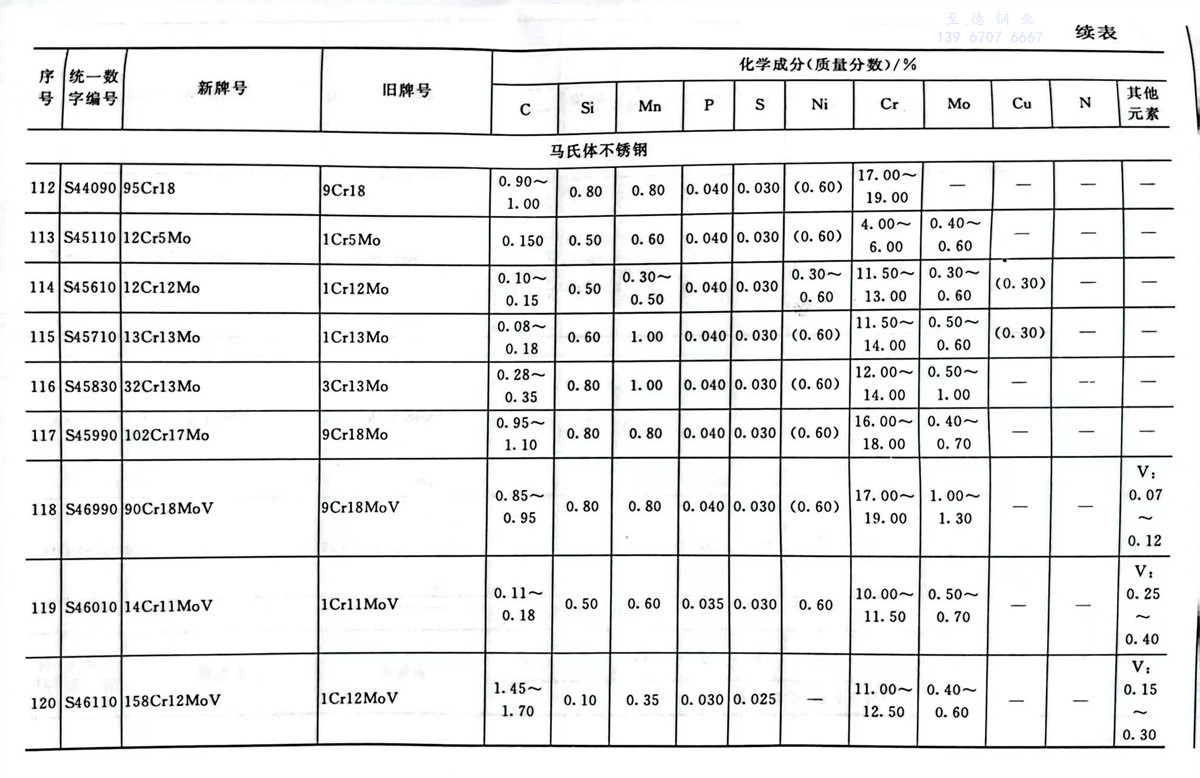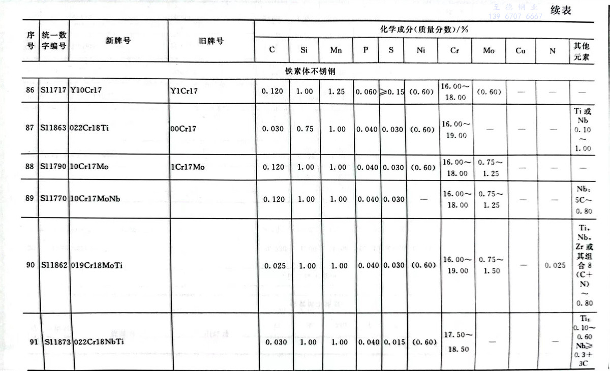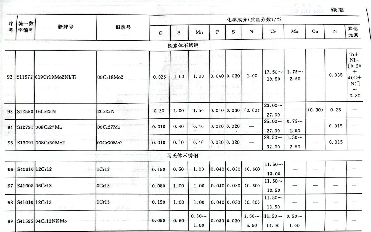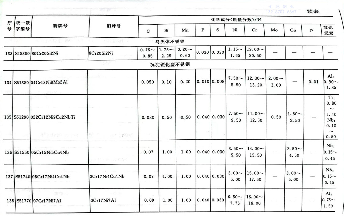 不(bu)銹鋼(gang)和耐熱鋼(gang)牌號及(ji)其化學(xue)成分表