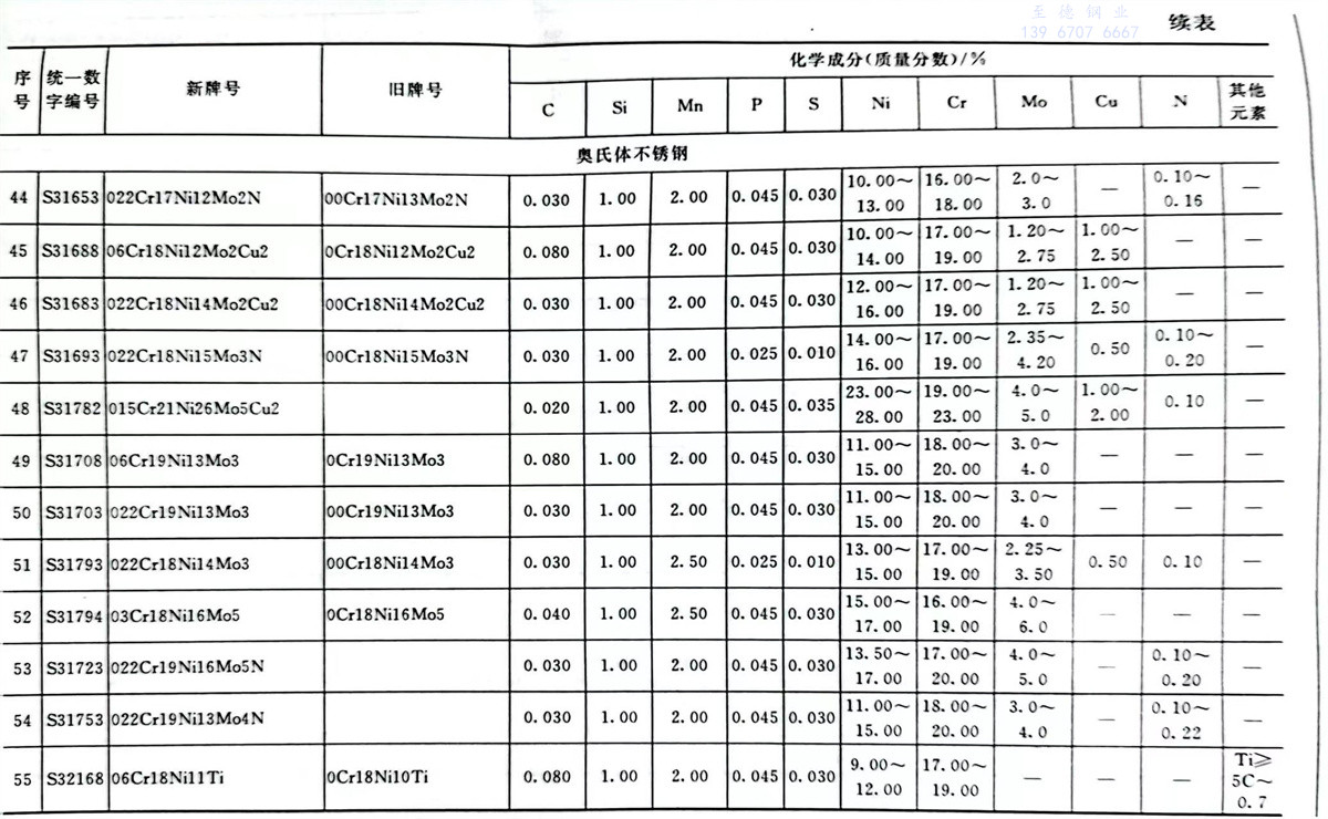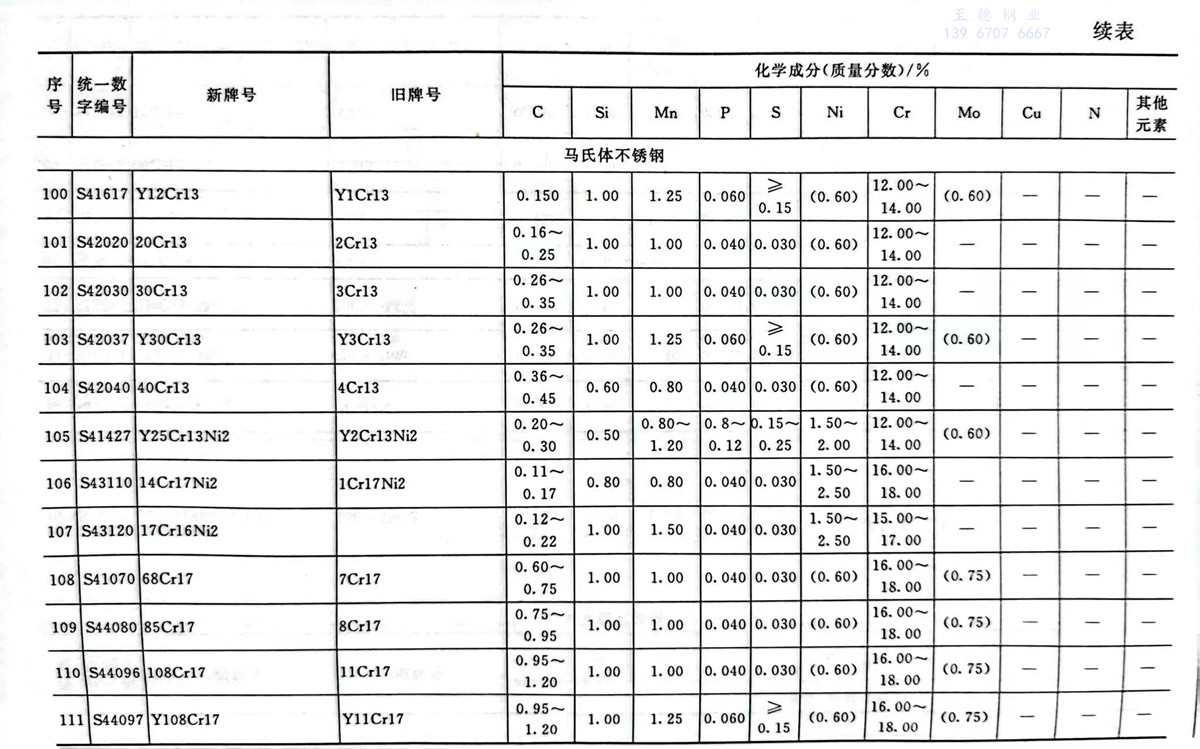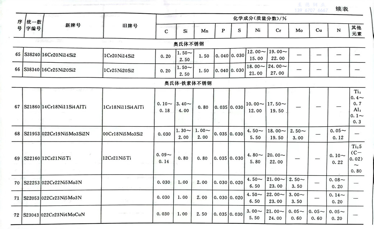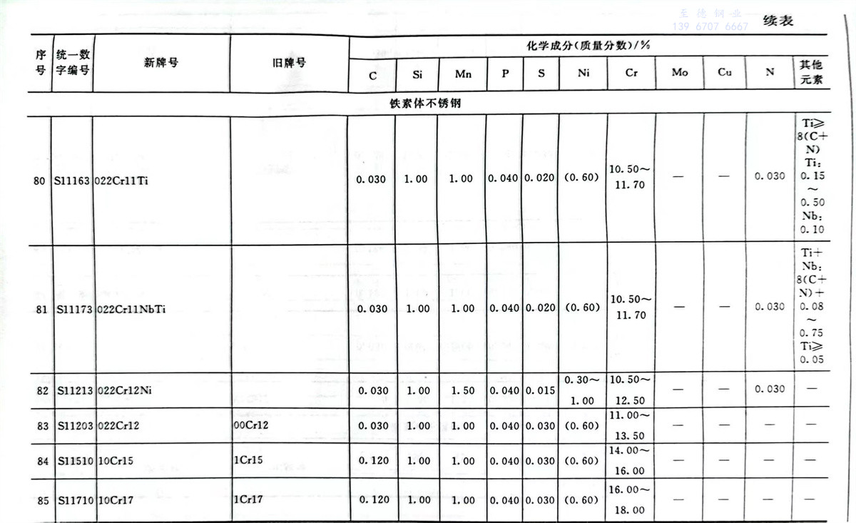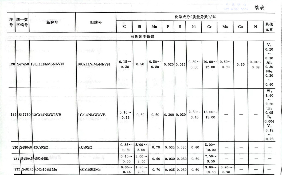 不(bu)銹鋼(gang)和耐熱鋼(gang)牌號及(ji)其化學(xue)成分表