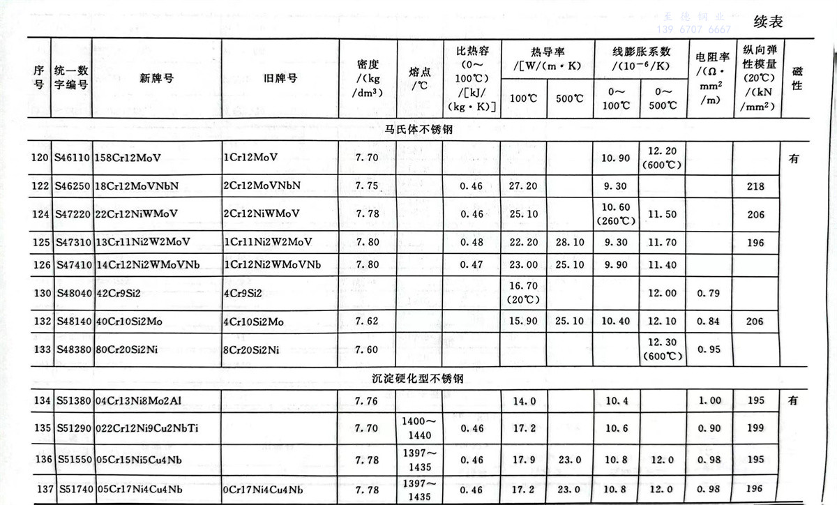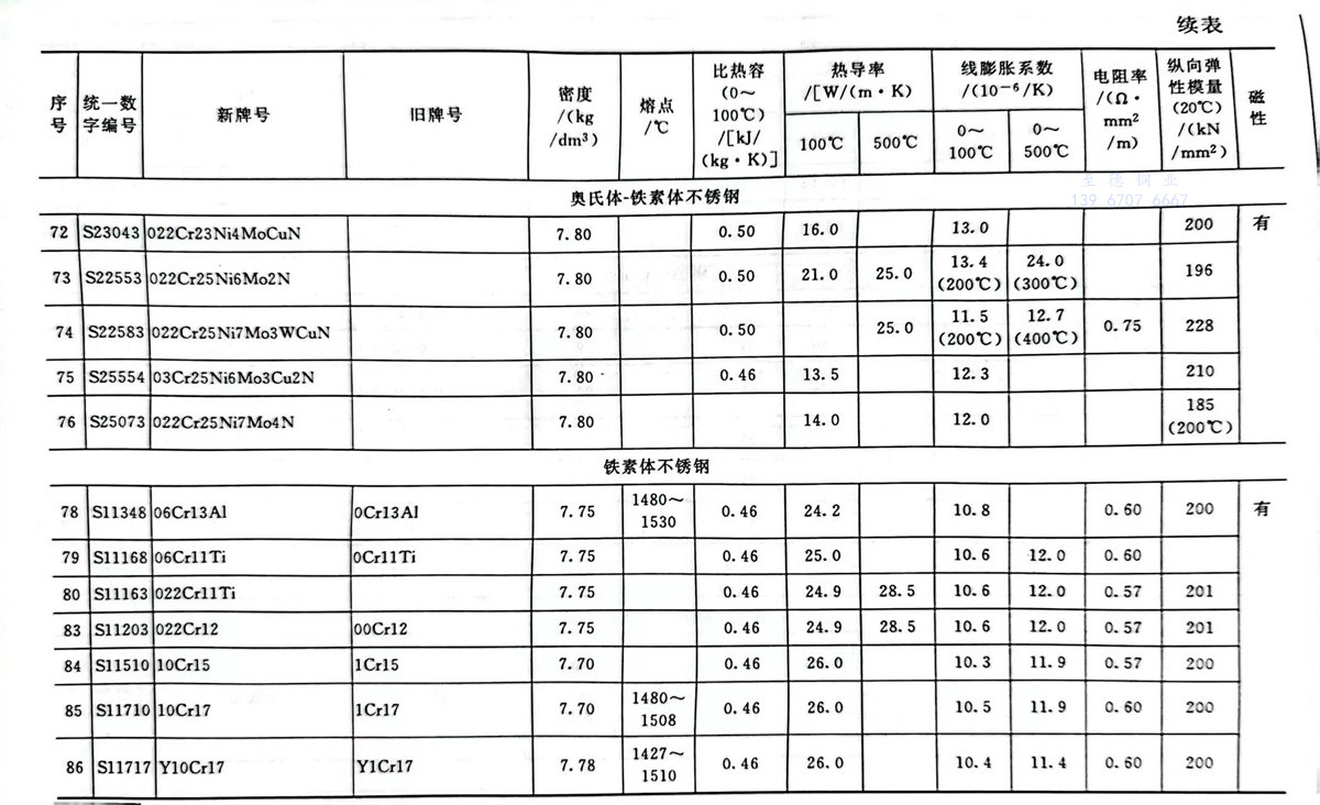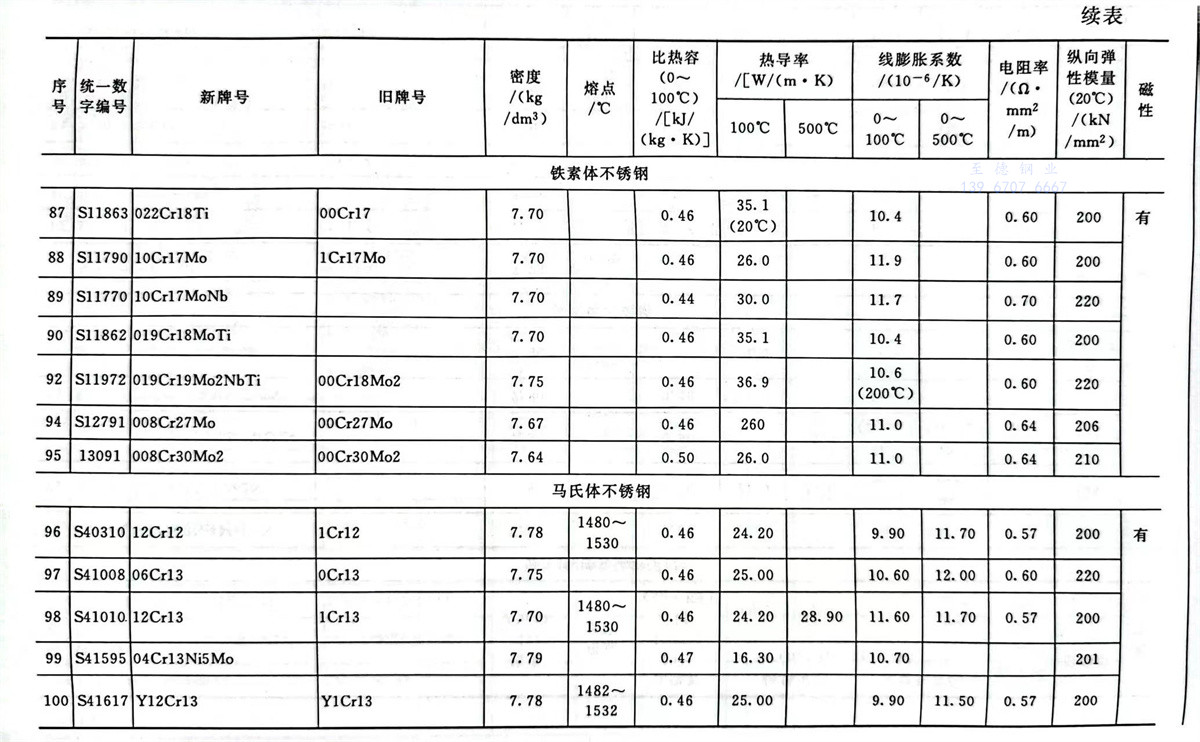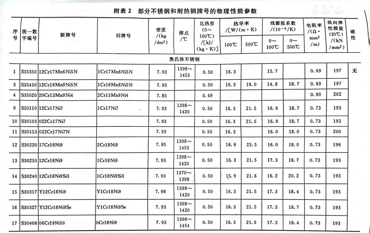不銹鋼和耐熱(re)鋼牌號的(de)物理性能參數表