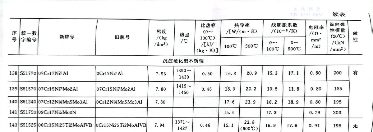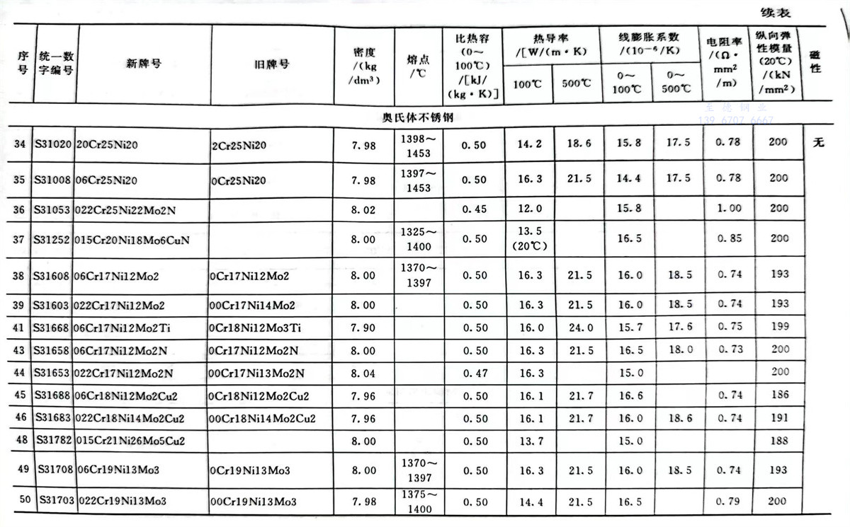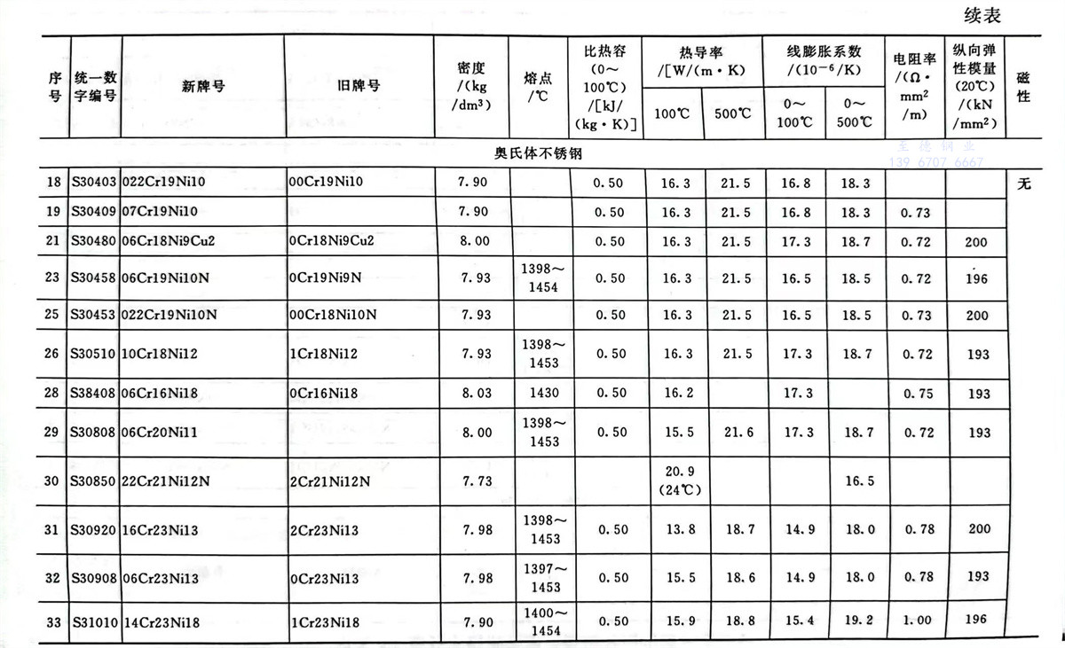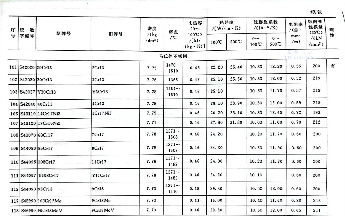 不銹鋼和耐熱(re)鋼牌號的(de)物理性能參數表