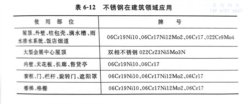 不銹鋼在(zai)建筑領域(yu)應用,列于表6-12。