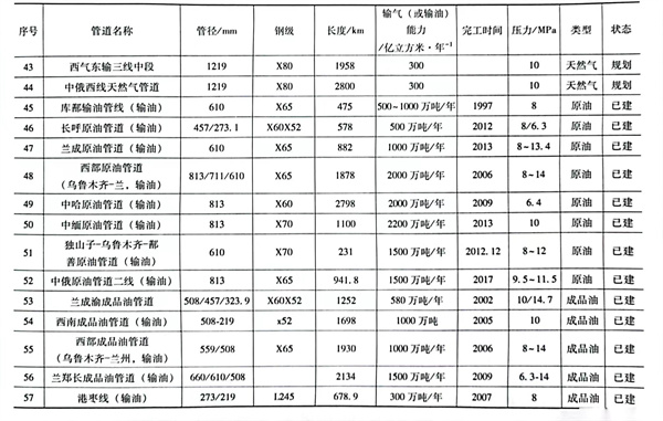 管線管的發展與我國油氣管道建設是密不可分的。20世紀50年代中后期,我國就開始了管道建設,如克拉瑪依油田-獨山子(克獨線)管道,全長147.2km,采用φ168mm×7、8mm 不銹鋼無縫管,輸送壓力8.5MPa,輸送量為100萬噸/年,該管道為我國第一條長輸管道;60年代初克獨復線建設時,鋼管口徑擴大到ф219mm×7mm、φ273mm×7mm,輸送量為150萬噸/年;從70年代開始,我國開展了多次大規模φ273mm×7mm 管道建設,如大慶-鐵嶺-撫順管道,全長663.6km,采用φ720mm×8mm 不銹鋼焊管,材質為16Mn,輸送量為2000萬噸/年,這是我國第一條大口徑、長距離輸送管道;90年代中期陜京輸氣管線建設和21世紀以來最具影響力的西氣東輸工程等。每一次大規模管道建設,都大大地提高了我國管線管的制造技術和裝備水平,促進管線管產品的升級和質量的提升。