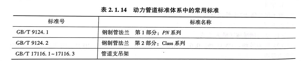 法蘭標準(zhun)常用(yong)PN系(xi)列和Class系(xi)列兩類(lei)。動力管道標準(zhun)體系(xi)中(zhong)的常用(yong)標準(zhun)見表2.1.14。