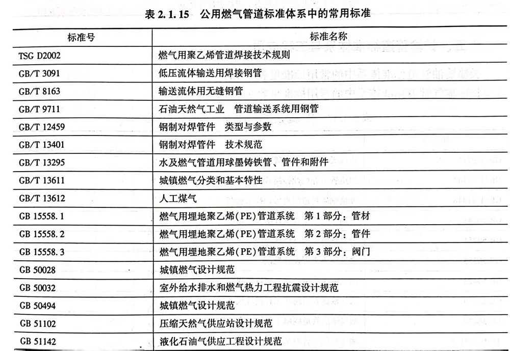 公用(yong)燃氣管道(dao)標(biao)(biao)準體系中的常用(yong)標(biao)(biao)準見表2.1.15。