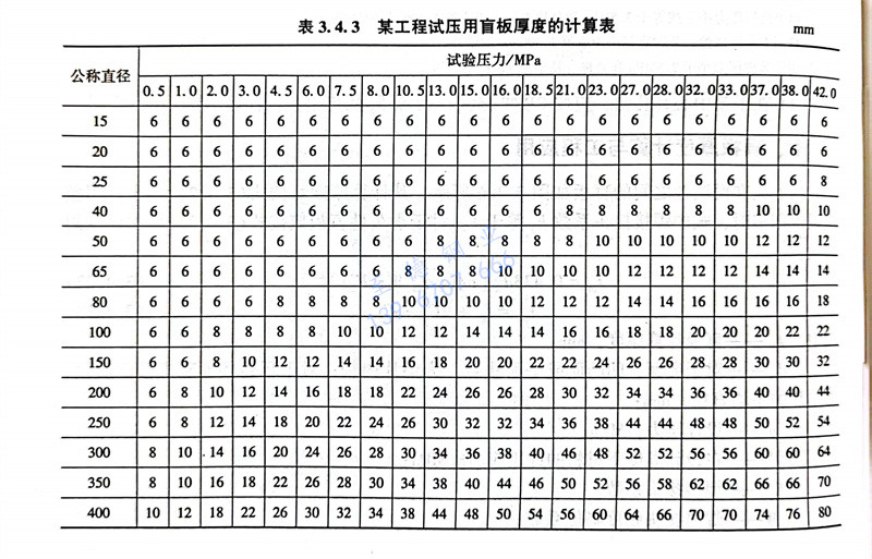 某工程計(ji)算(suan)試壓用盲板厚度,管(guan)道設計(ji)人員根據式(3.4.22),并根據管(guan)道特性參(can)數,進行計(ji)算(suan),如表3.4.3所示。