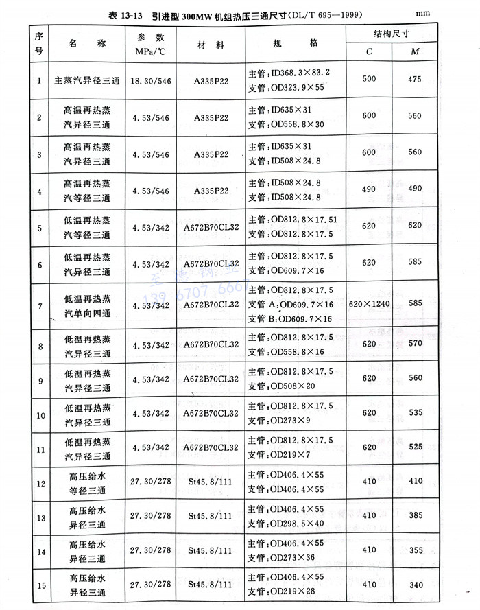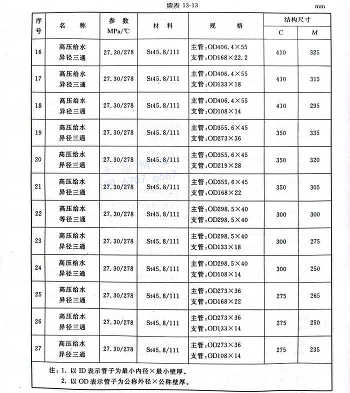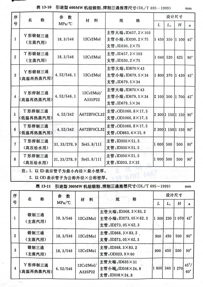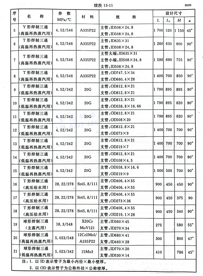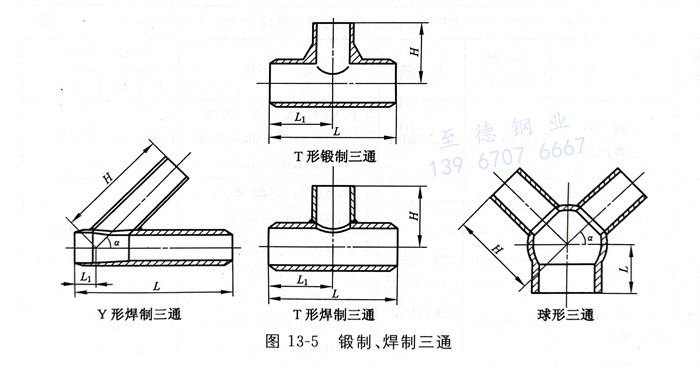 a. 引進型600MW機組鍛制、焊制三通(tong)結構型式見(jian)圖13-5,尺(chi)(chi)寸(cun)見(jian)表13-10;引進型300MW 機組鍛制、焊制三通(tong)結構型式見(jian)圖13-5,尺(chi)(chi)寸(cun)見(jian)表13-11;
