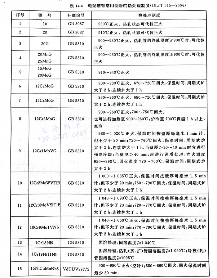 對于熱彎彎管,推薦(jian)的熱處理制度見(jian)表14-6。