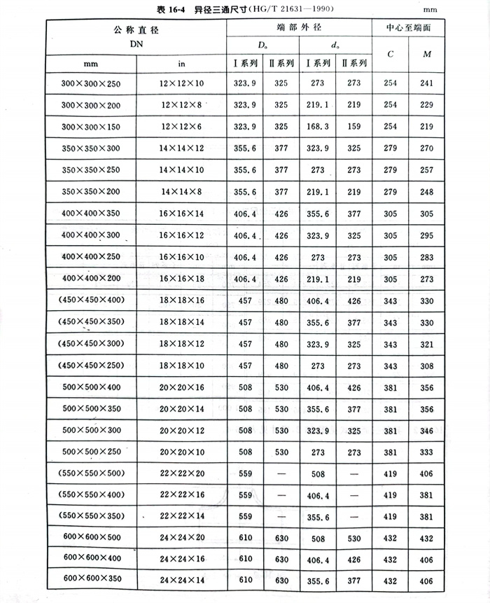 b. 異徑(jing)三(san)通型(xing)式見圖 16-2 ,尺寸見表 16-4 。