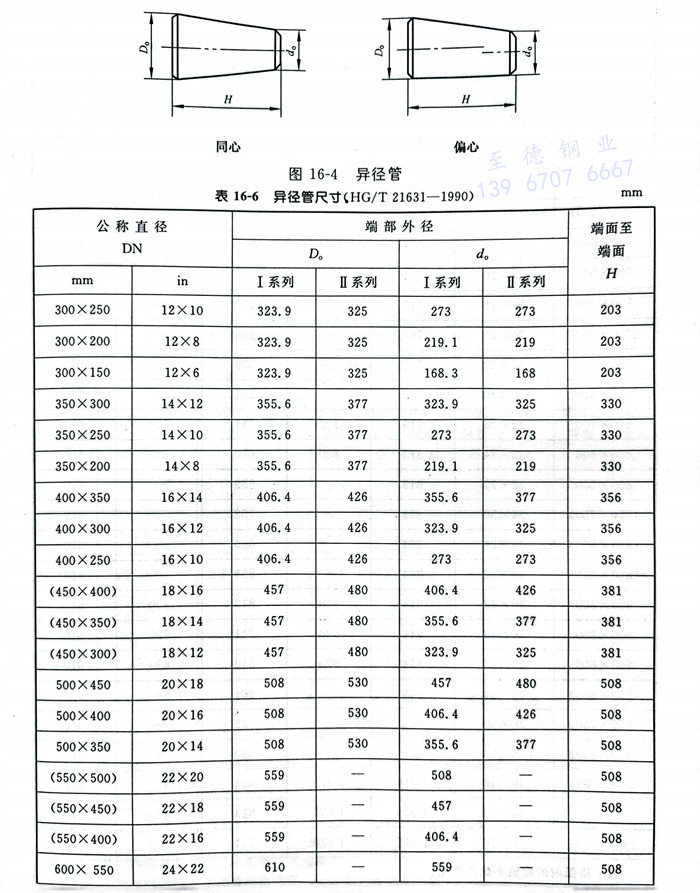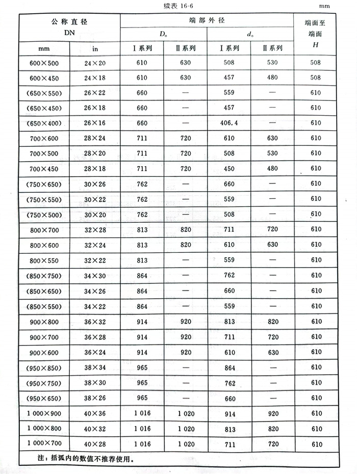 d. 異徑管型式見圖 16-4 ,尺寸(cun)見表(biao) 16-6 。