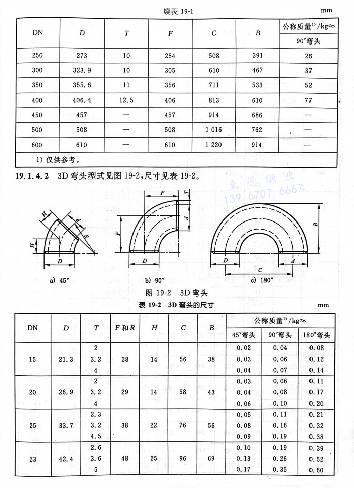 3D彎(wan)頭(tou)型式見(jian)圖19-2,尺寸見(jian)表19-2。