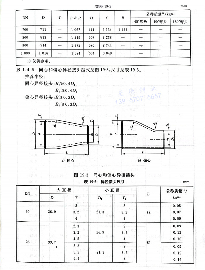 同心和偏心異徑接(jie)頭型式見(jian)圖19-3,尺寸見(jian)表19-3。
