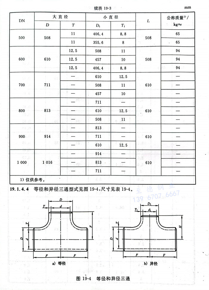 等(deng)徑和(he)異徑三通型式見(jian)圖19-4,尺寸見(jian)表19-4。