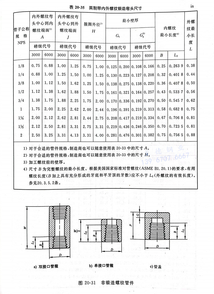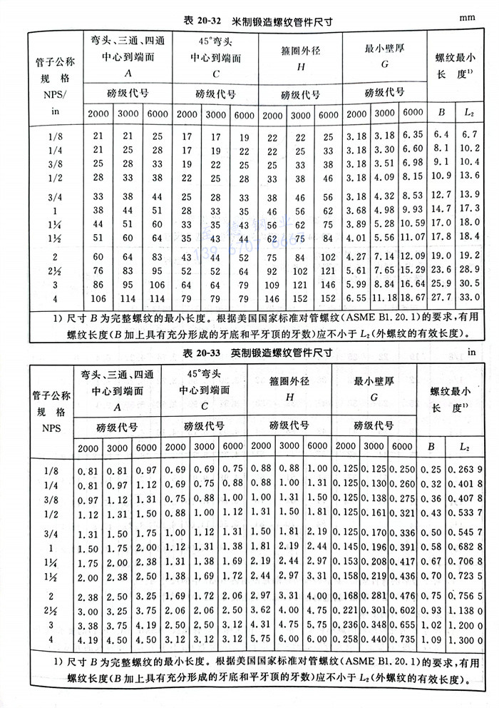 米制(zhi)(zhi)非(fei)鍛造(zao)螺紋(wen)管件的型(xing)式見(jian)圖20-31,尺寸(cun)見(jian)表(biao)20-36;英(ying)制(zhi)(zhi)非(fei)鍛造(zao)螺紋(wen)管件的型(xing)式見(jian)圖20-31,尺寸(cun)見(jian)表(biao)20-37。