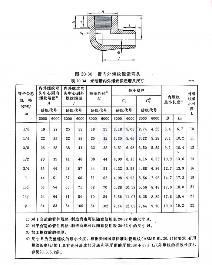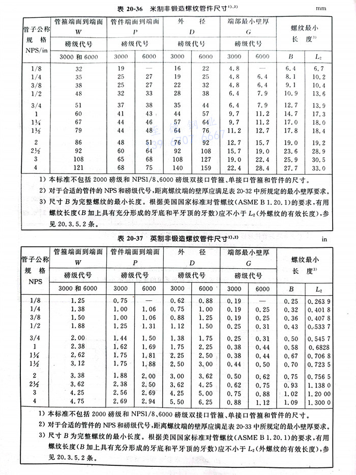 ASME B16.11-2005標準適用于表20-30~表20-39所示的承插焊式(shi)和(he)螺紋連(lian)接式(shi)兩種鍛制管件(jian)的壓力-溫度等級、材料、尺寸、公差(cha)和(he)標志(zhi)。