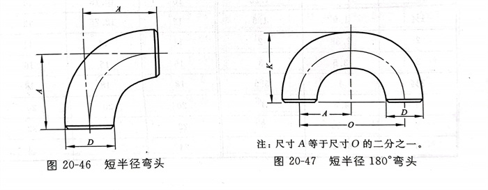 米制短(duan)半徑(jing)180°彎(wan)頭的型(xing)式見(jian)(jian)圖(tu)20-47,尺(chi)(chi)寸見(jian)(jian)表20-66;英制短(duan)半徑(jing)180°彎(wan)頭型(xing)式見(jian)(jian)圖(tu)20-47,尺(chi)(chi)寸見(jian)(jian)表20-67。