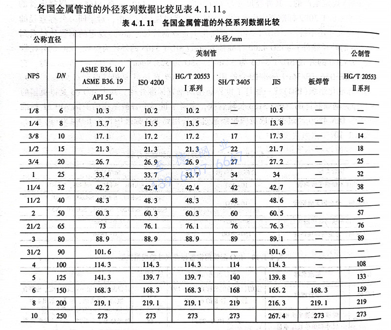 各國(guo)金屬管道的外徑系列數據比較見(jian)表4.1.11。