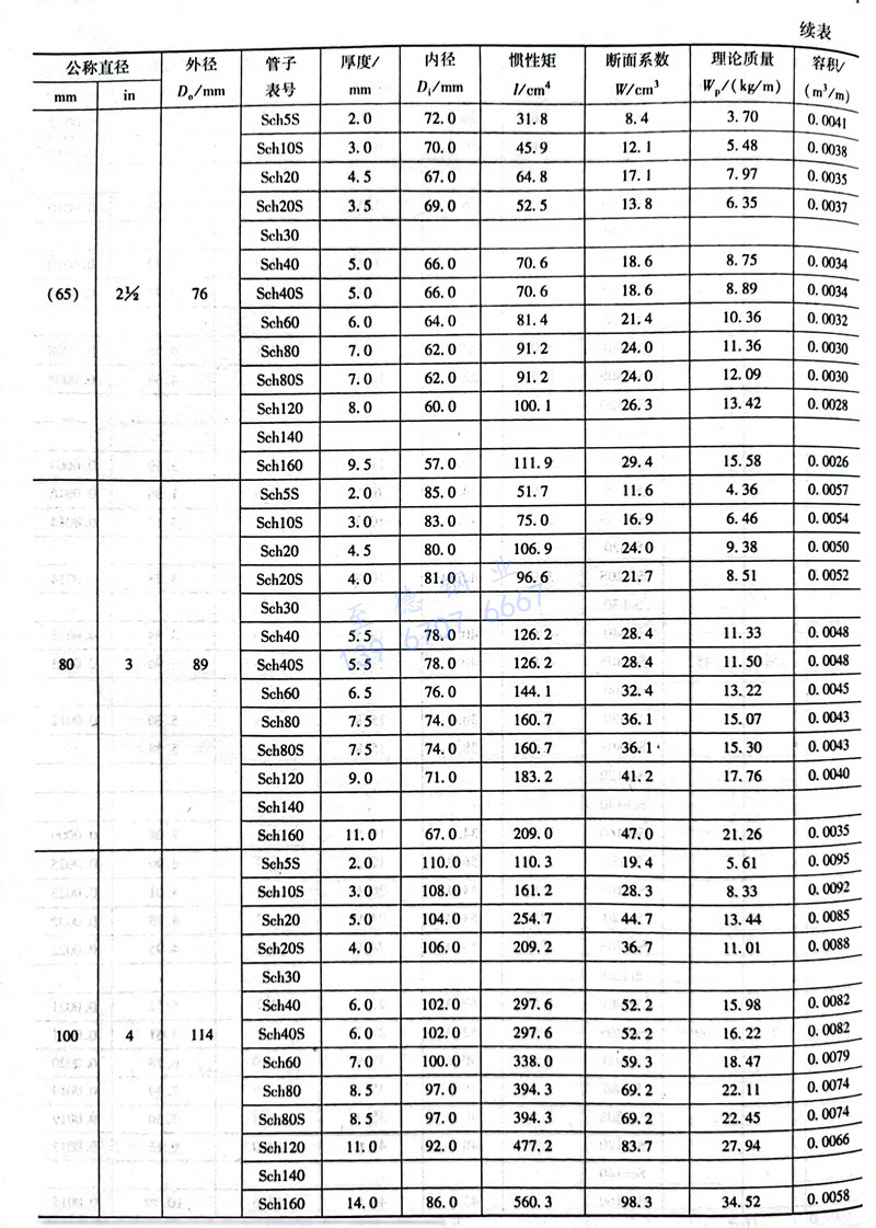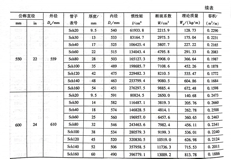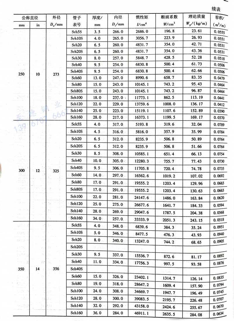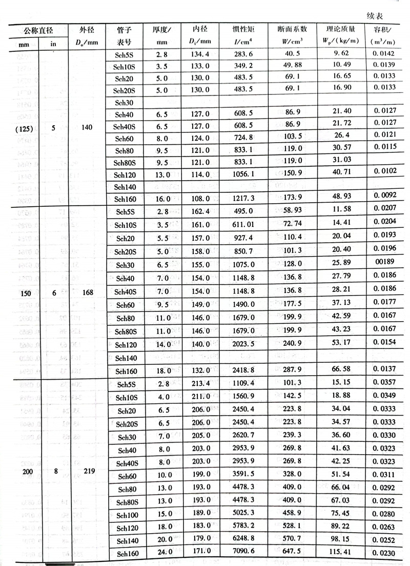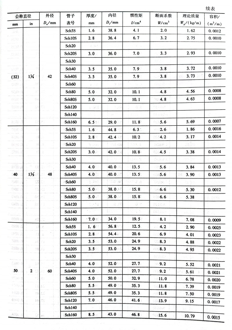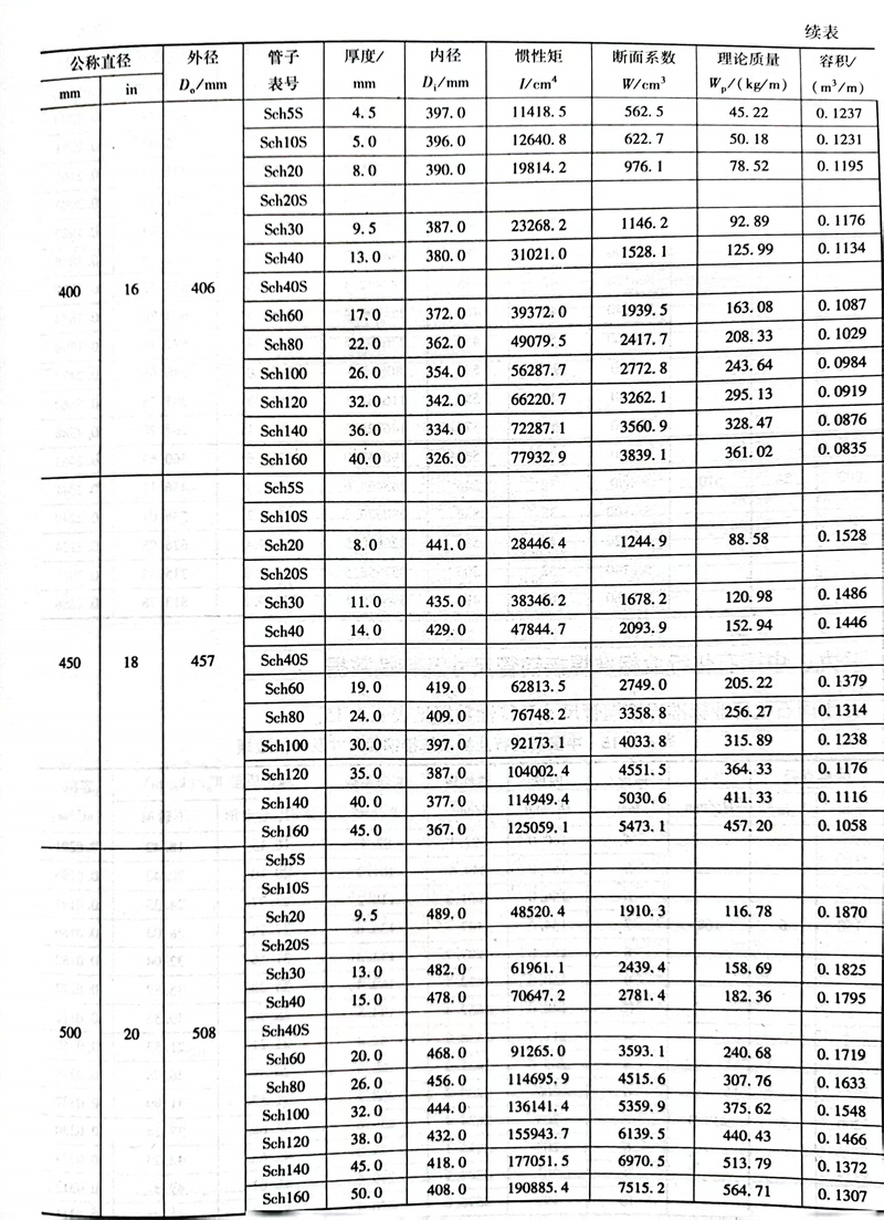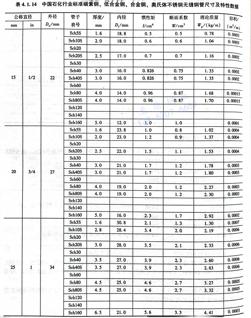 表4.1.14 中國石(shi)化行業標準碳素鋼、低合金鋼、合金鋼、奧氏體不銹鋼無縫鋼管尺寸(cun)及特(te)性(xing)數據(ju)