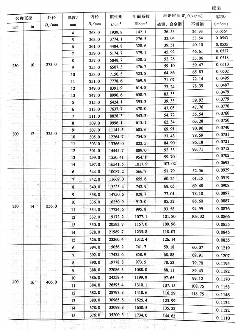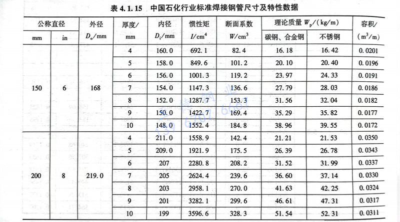 中國石化行業標準焊接鋼管尺寸及(ji)特性數據見表 4.1.15