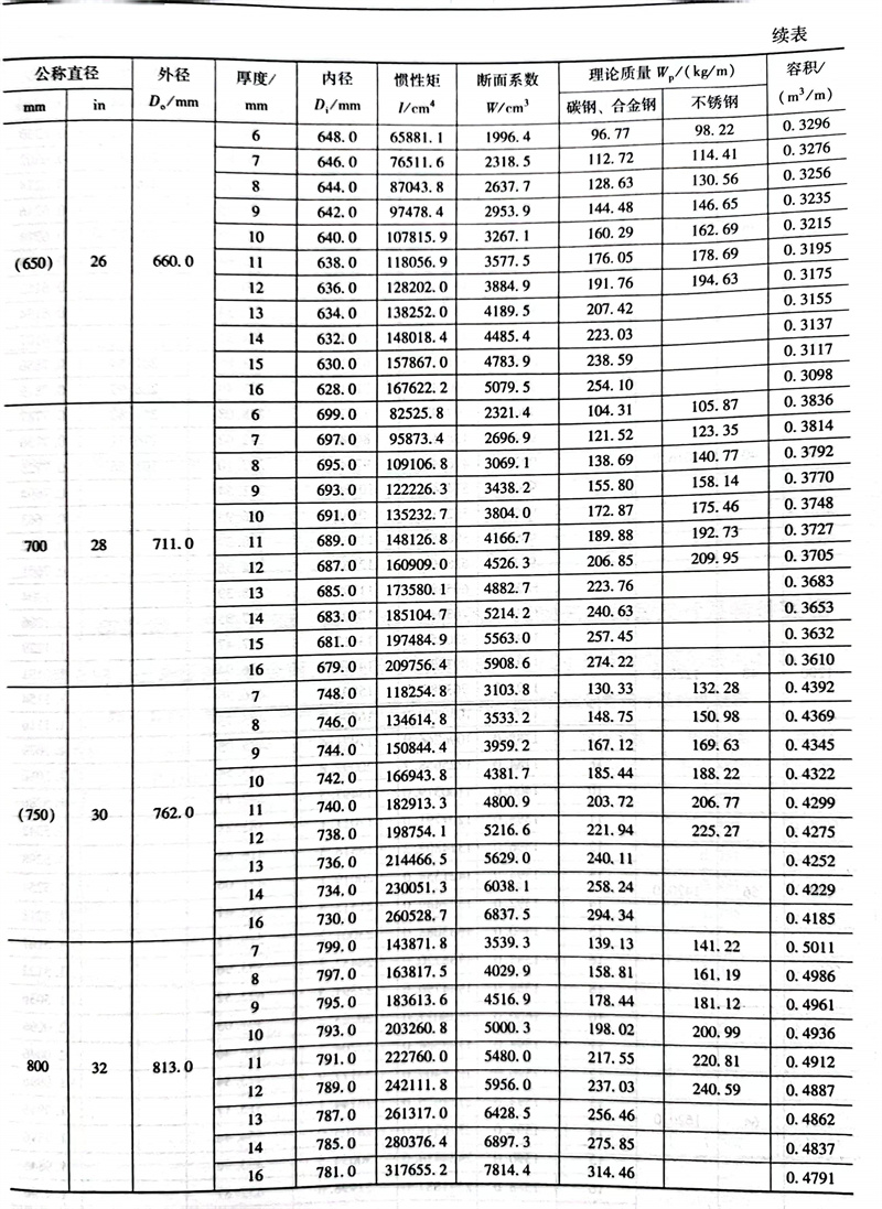 中國石化行業標準焊接鋼管尺寸及特性數據