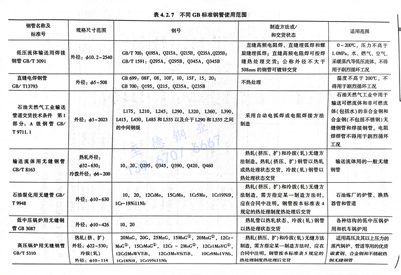 不同 GB 標準鋼(gang)管的使用范圍見表 4.2.7