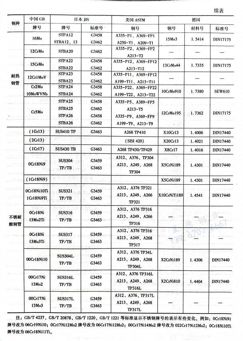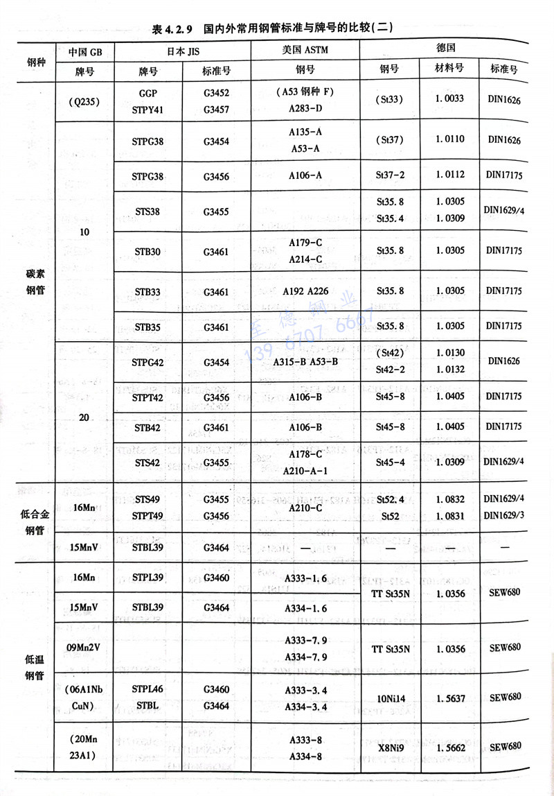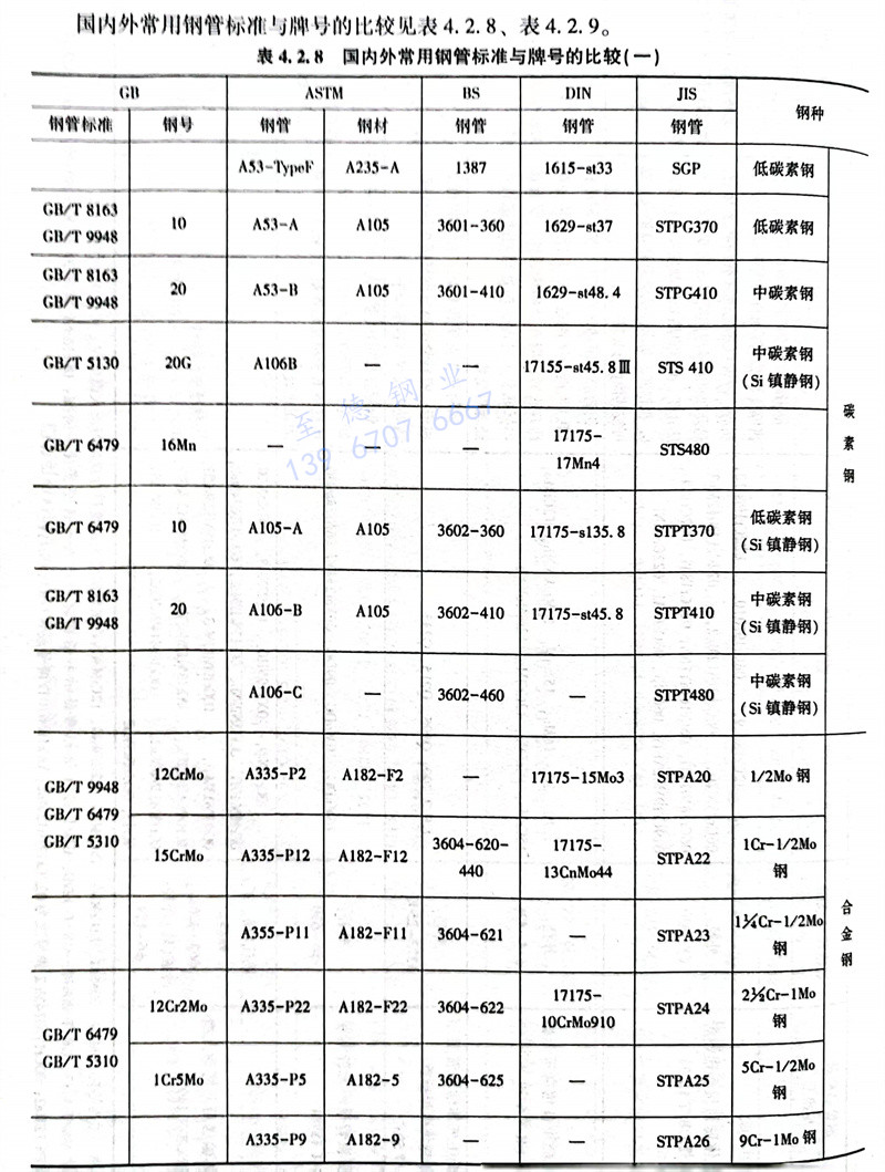 國內(nei)外(wai)常(chang)用鋼管標準(zhun)與(yu)牌號的比較見(jian)表 4.2.8 ,表 4.2.9