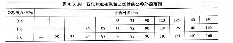 表4.3.10 石化(hua)標準硬聚氯乙烯管(guan)的公稱外徑范圍