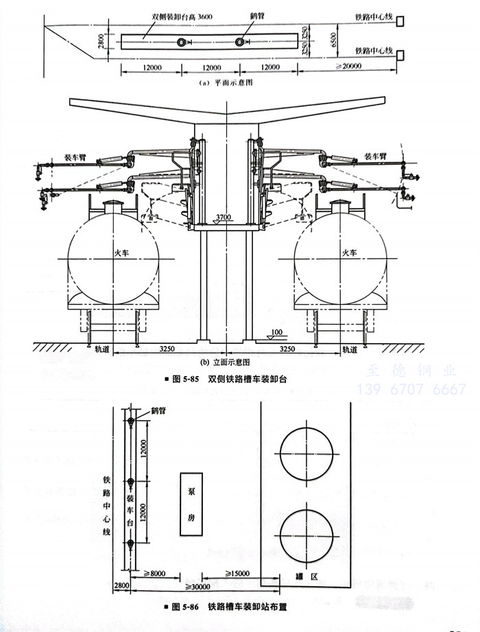 雙側(ce)鐵路槽車裝卸臺(圖5-85)
