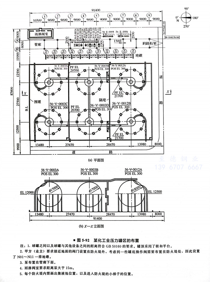 某化工全(quan)壓力罐區(qu)的布置(圖(tu)5-92)
