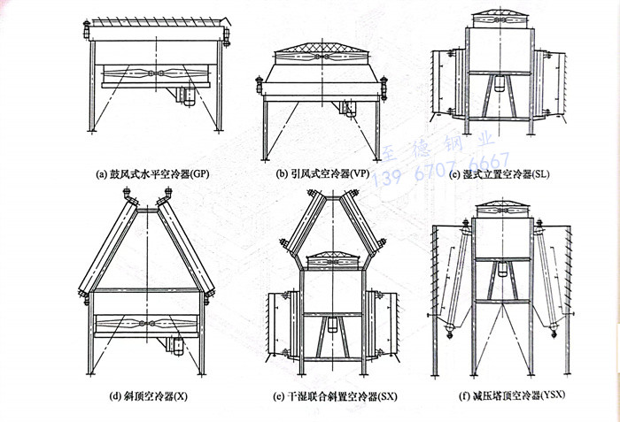 ②. 按空(kong)冷(leng)(leng)器(qi)通風(feng)方(fang)式(shi)分類:自然通風(feng)式(shi)全(quan)冷(leng)(leng)器(qi);鼓風(feng)式(shi)空(kong)冷(leng)(leng)器(qi);引風(feng)式(shi)空(kong)冷(leng)(leng)器(qi)。