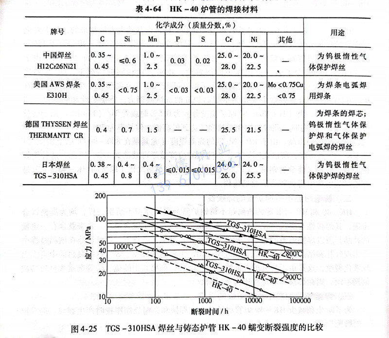 HP系列鑄造爐(lu)管焊接時使用的(de)焊絲牌號及化學成分見表(biao)(biao)4-65。從表(biao)(biao)4-64和表(biao)(biao)4-65中可以看出,焊絲的(de)基(ji)本(ben)化學成分與被焊爐(lu)管的(de)化學成分基(ji)本(ben)相(xiang)同(tong)。