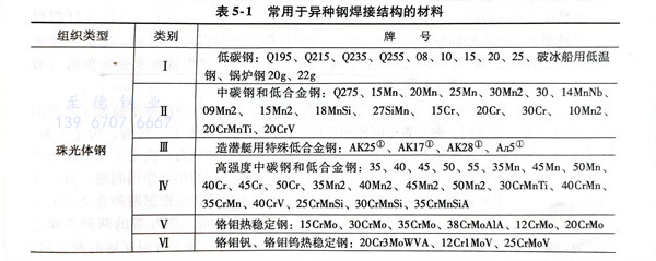 常用(yong)于異種鋼(gang)焊接結構的材料見(jian)表(biao)5-1。
