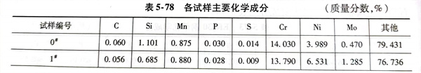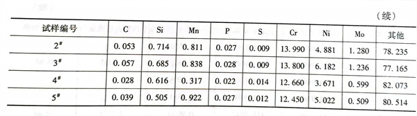 選水輪機母材(cai)為(wei)ZG06Cr13Ni5Mo鋼,并將定義為(wei)0#試(shi)樣(yang),其主要成分見表5-75。用(yong)E410NiMo藥芯(xin)焊(han)絲(si)堆(dui)焊(han)3層,按(an)表5-76堆(dui)焊(han)參數所制備(bei)的堆(dui)焊(han)的試(shi)樣(yang)編(bian)號為(wei)1#、2和(he)3#試(shi)樣(yang)。